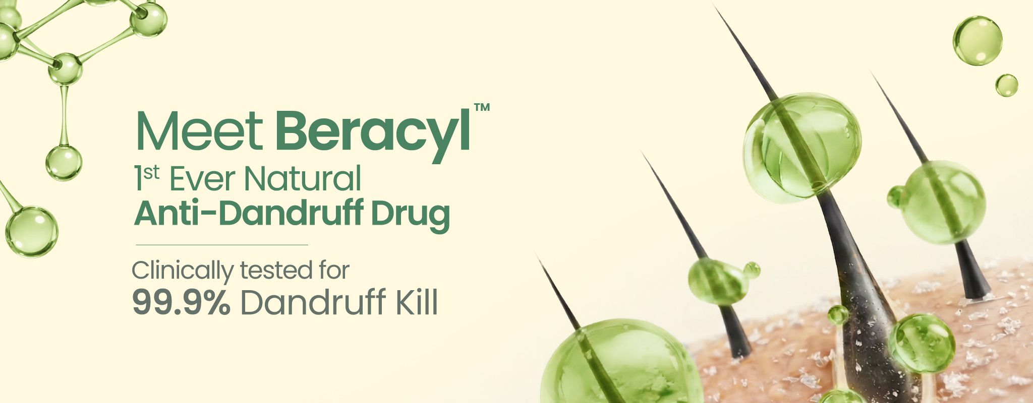 Unlike conventional synthetic antifungals, Beracyl™ delivers strong clinical efficacy without scalp dryness, hair damage, or sensitivity preserving barrier integrity.