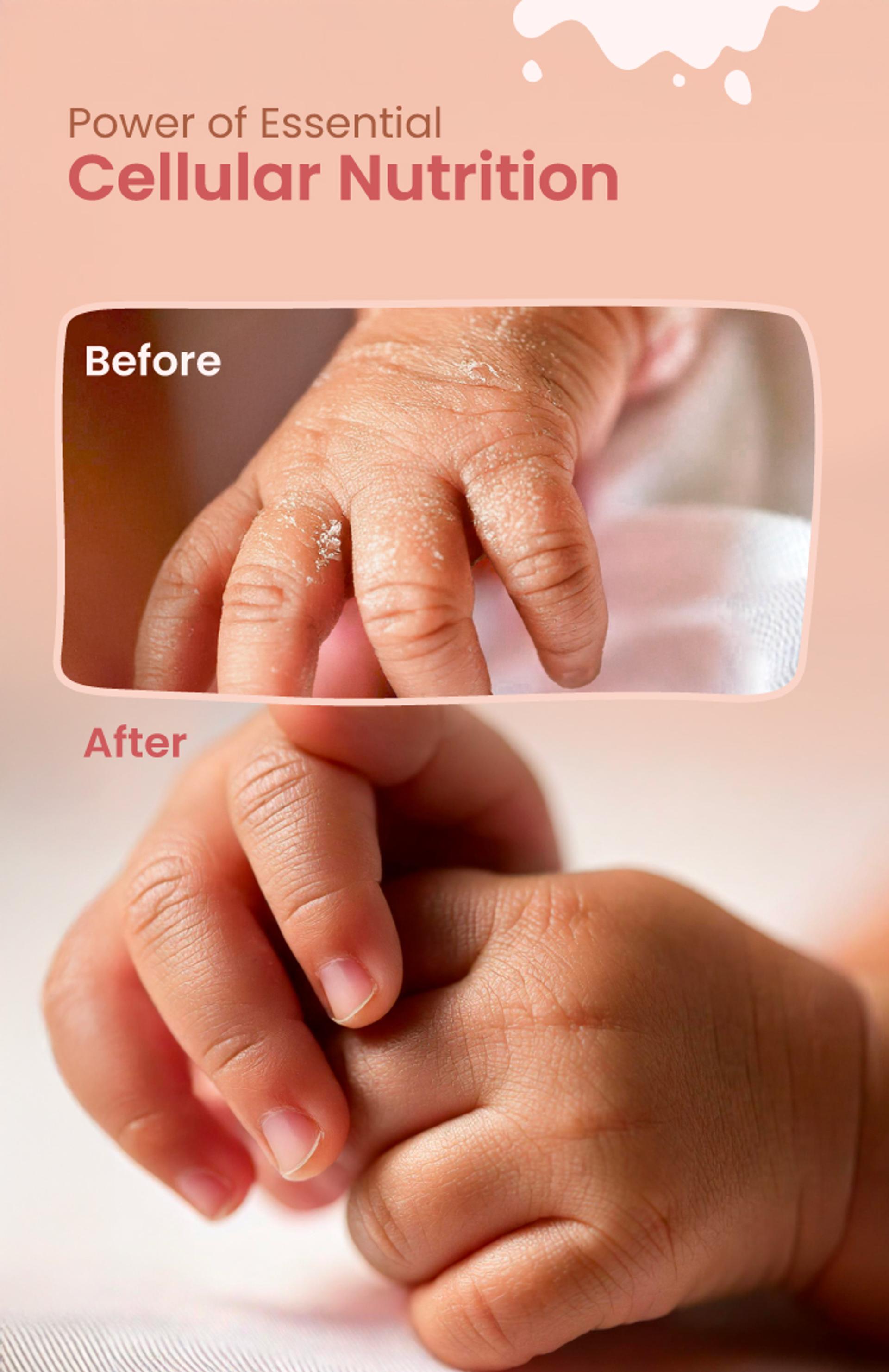MALAI provides long-lasting, lipid-rich moisturization for 24–48 hours by strengthening the skin’s natural barrier. Desi ghee’s omega fatty acids form a protective seal that prevents dryness, flakes, and itchiness - keeping newborn skin soft, cushioned, and irritation-free.
