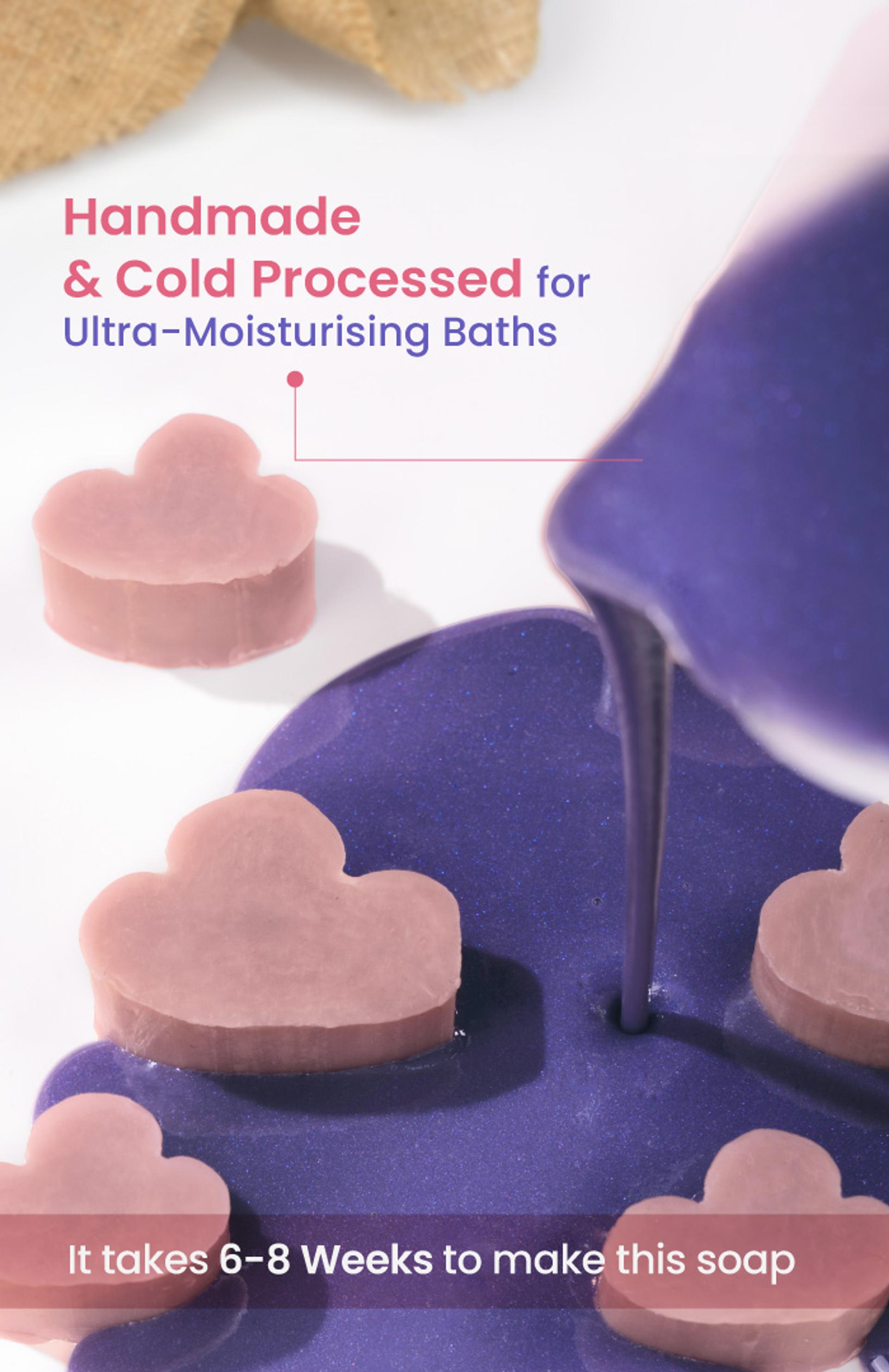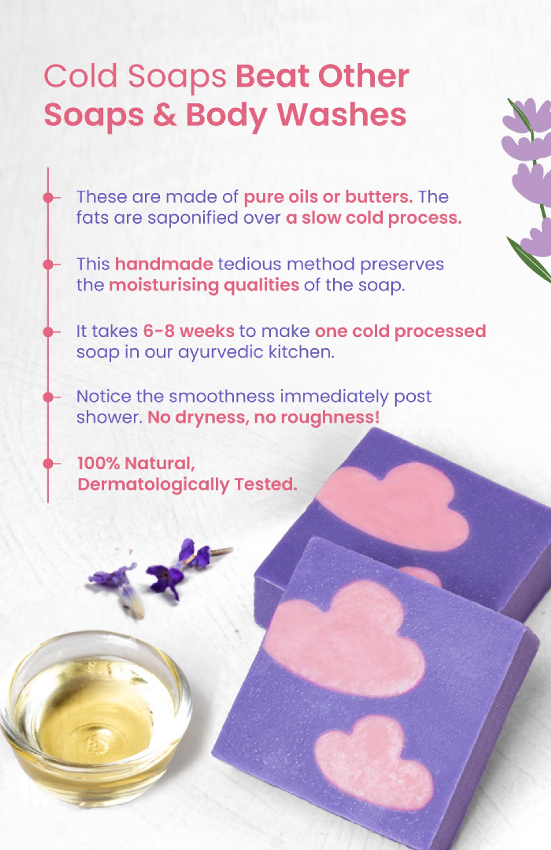 Handcrafted & cold processed in 6-8 weeks with coconut & castor oil, it contains saponified cleansing molecules, natural glycerin & preserved fatty matter for a gentle, non-drying & skin softening bath. Further, the Himalayan lavender's therapeutic compounds calm cellular inflammation, turning every bath into a healing ritual.