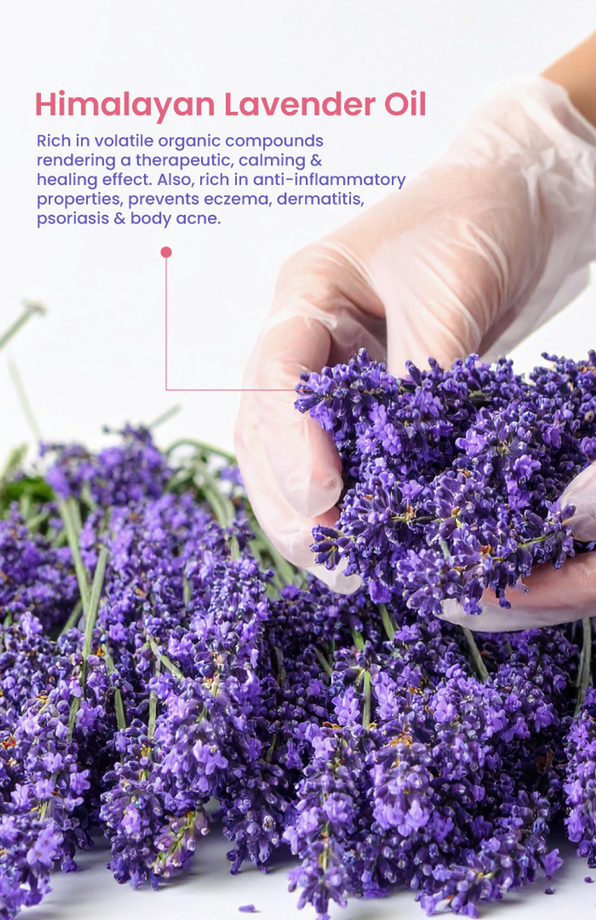 Uplifts the bathing ritual with healing compounds of Himalayan Lavender.