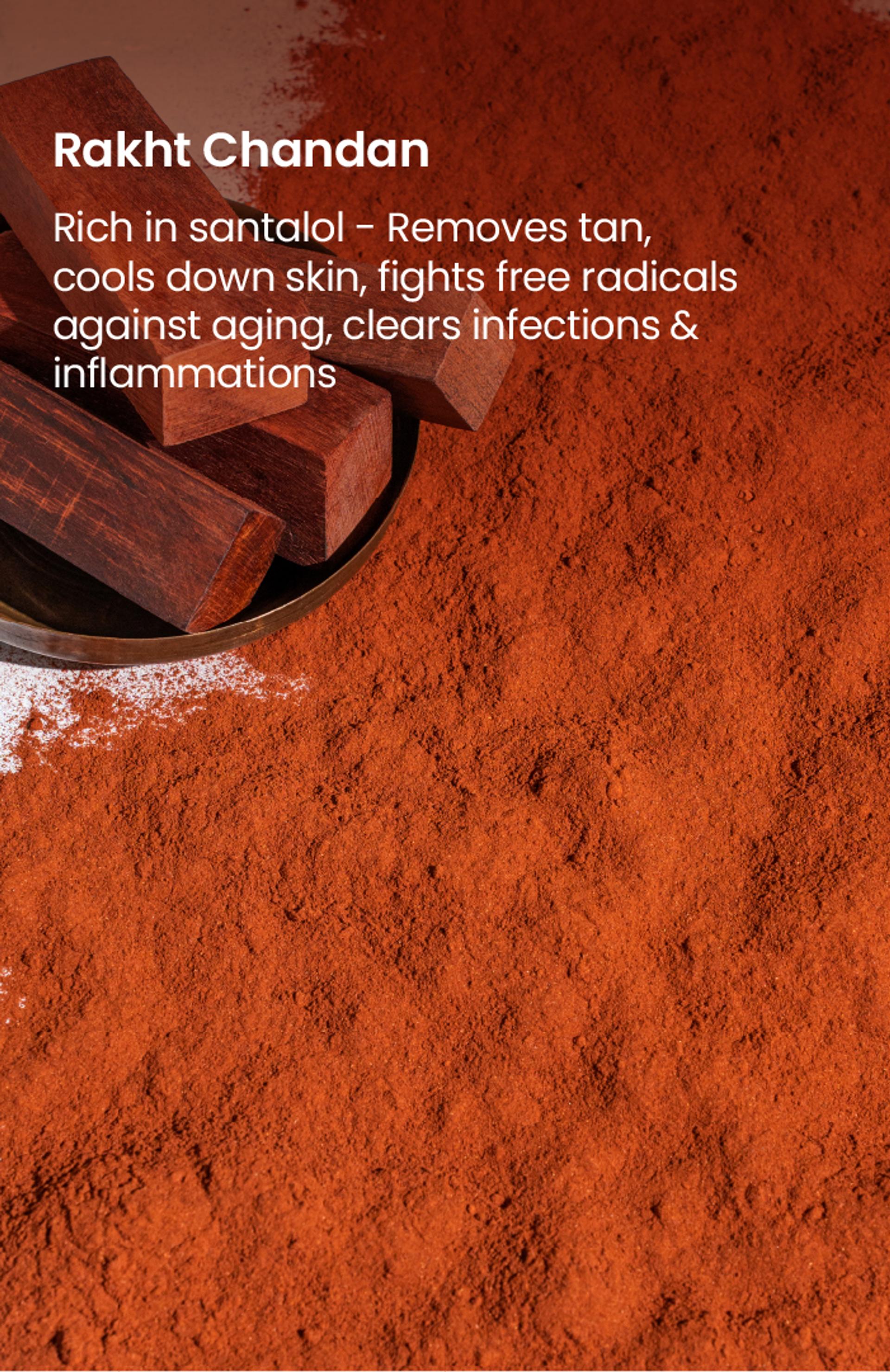 Uplifts bathing with cooling, calming & even-toning compounds of Rakht Chandan.