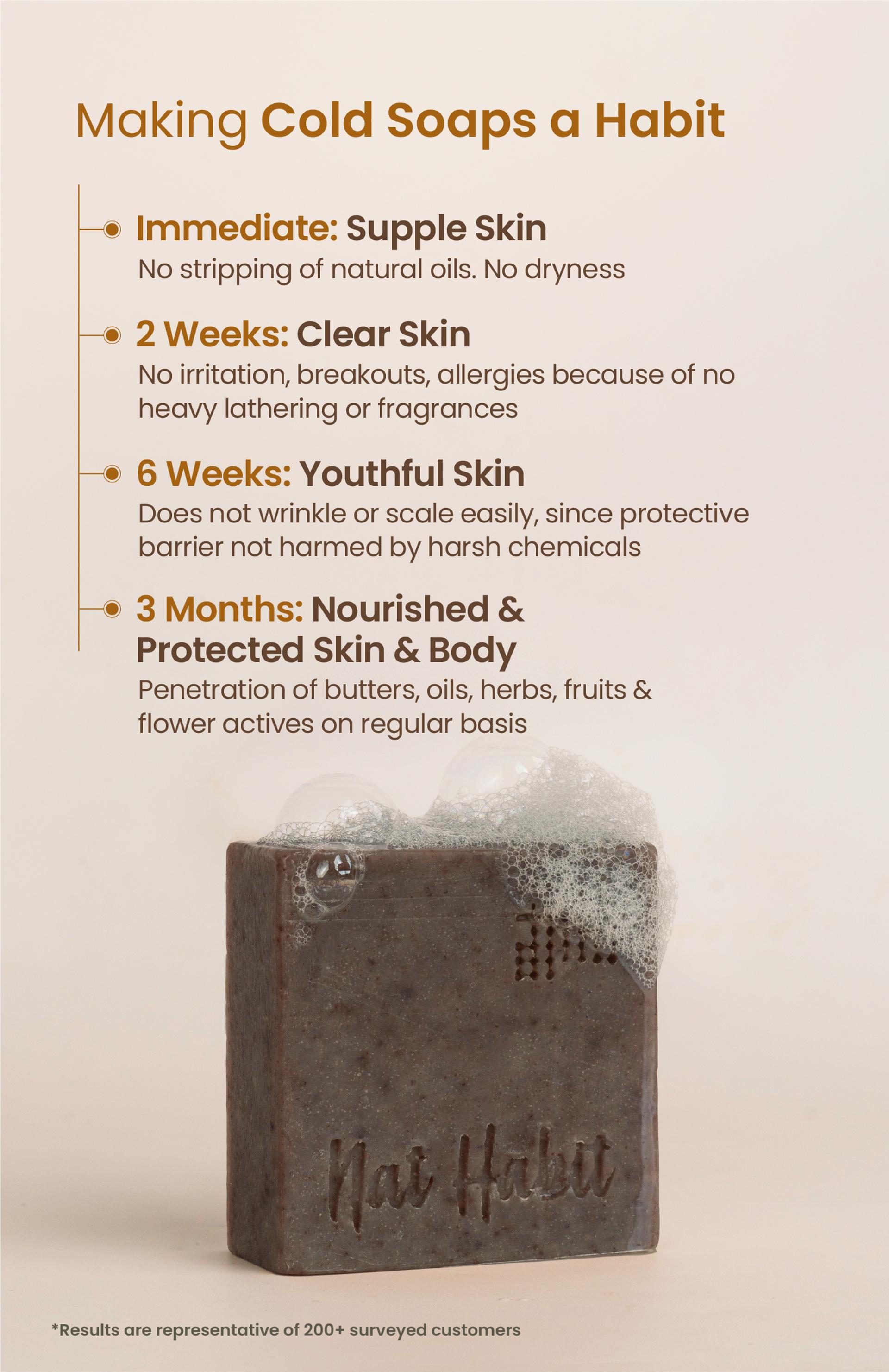 With regular daily use over time, skin responds beautifully. The naturally formed glycerin acts as a humectant to draw in moisture, while the intact oils help restore the barrier. Within months, skin feels noticeably softer, more even-textured, and resilient, with no extra steps or layers needed.