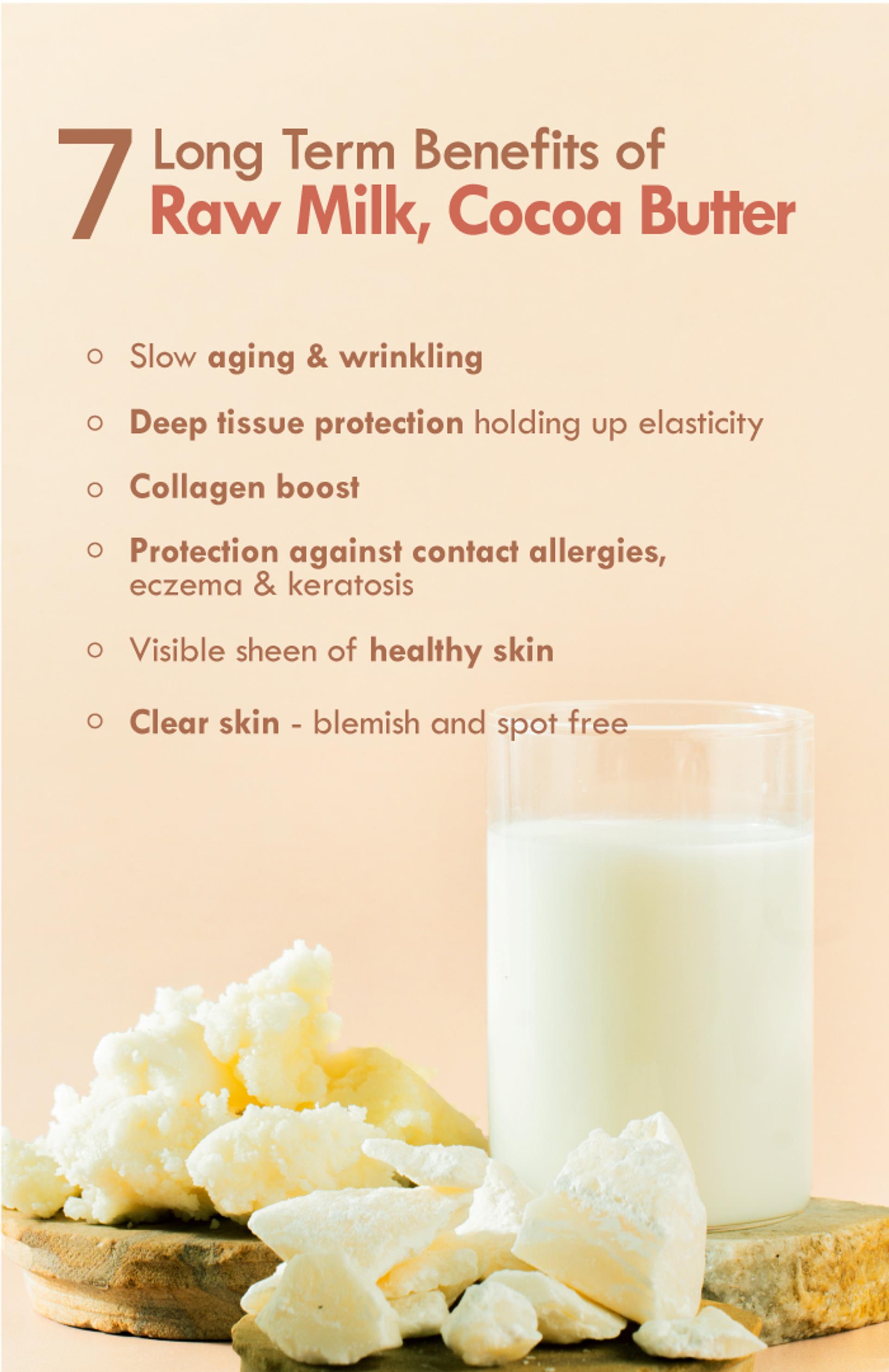Raw milk stimulates collagen production; meanwhile, the high-fat content ensures that these actives are delivered effectively to the dermis, supporting continuous collagen regeneration.