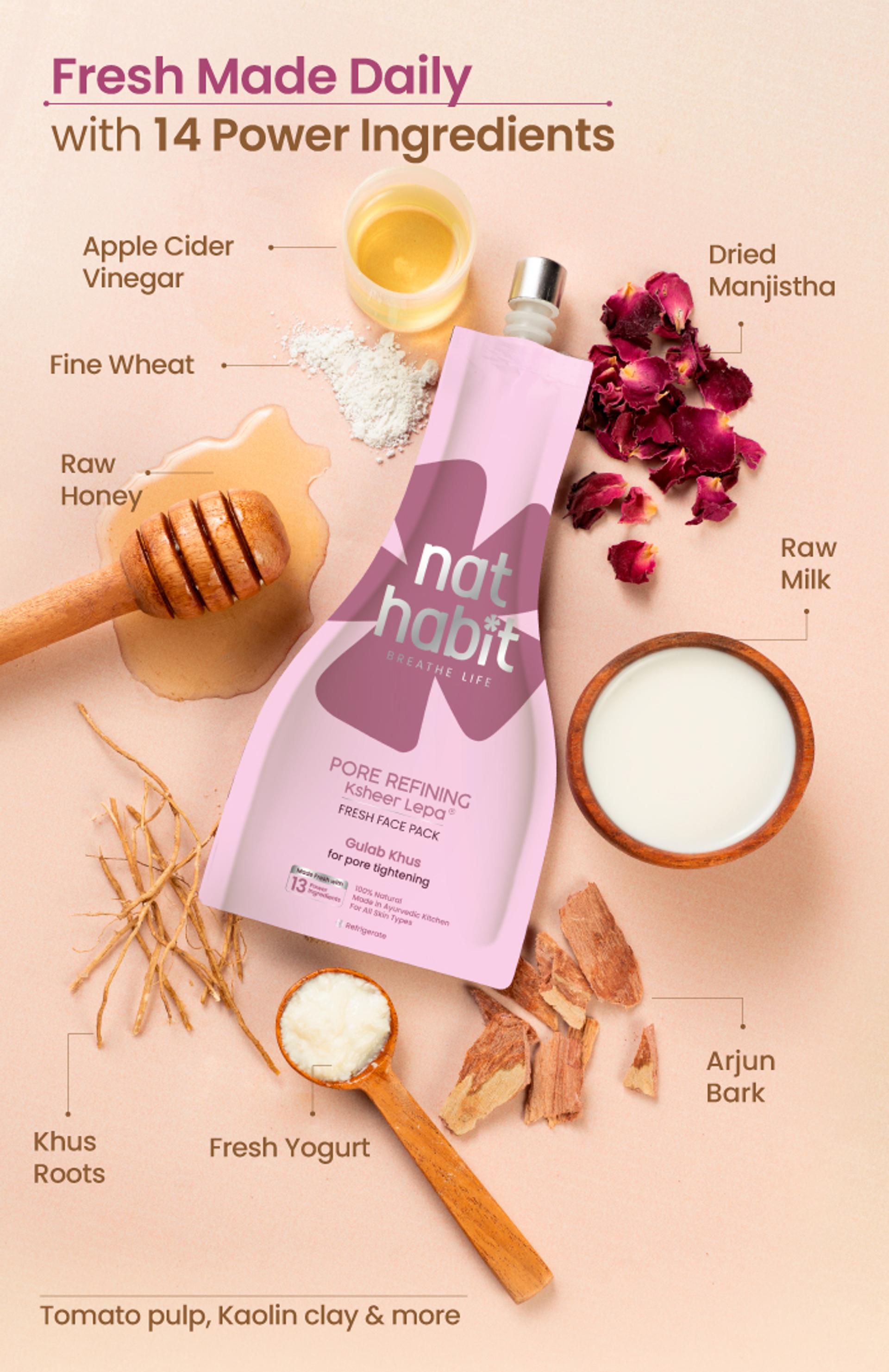 Made fresh daily in our Ayurvedic Kitchen, this pack is loaded with real milk, yogurt, nut oils, and potent herbal bioactives. It nourishes deeply, reaching every layer and cell, supporting their natural functions to energize, protect, and revive the skin for a supple, radiant glow.