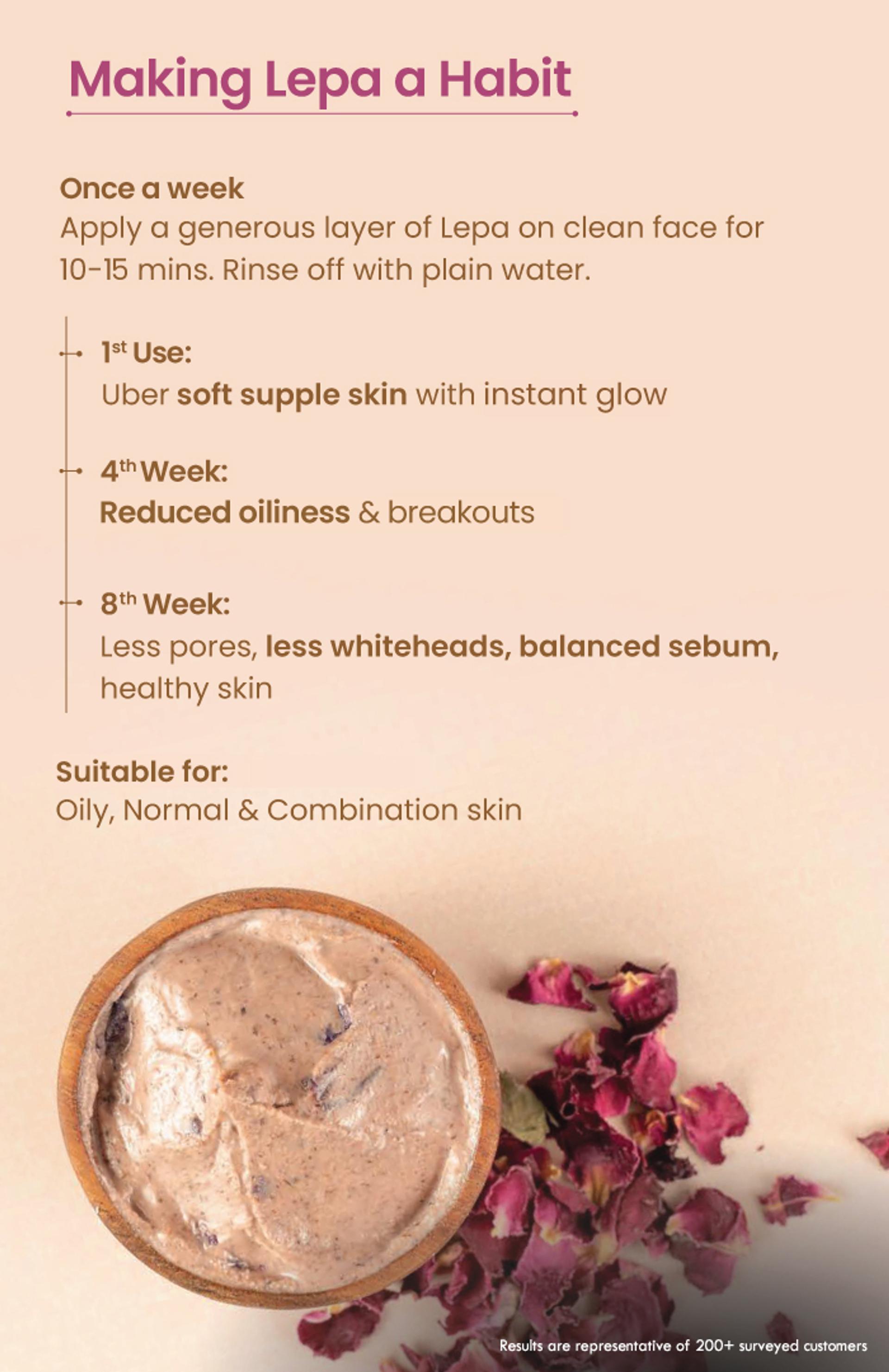 As the lepa sets, it forms a soft barrier that traps warmth and moisture, gently boosting blood flow and lymphatic drainage. This warm, moist micro-climate mimics the skin’s natural healing state, speeding up detox and preparing skin to absorb nutrients better.