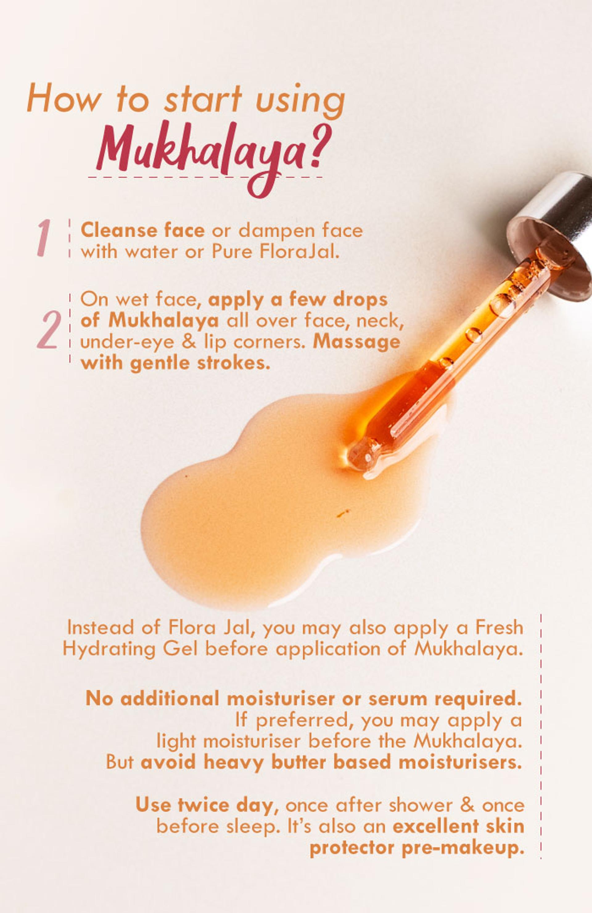 No additional moisturiser or serum required. If preferred, you may apply a light moisturiser before the Mukhalaya. But avoid heavy butter based moisturisers.
