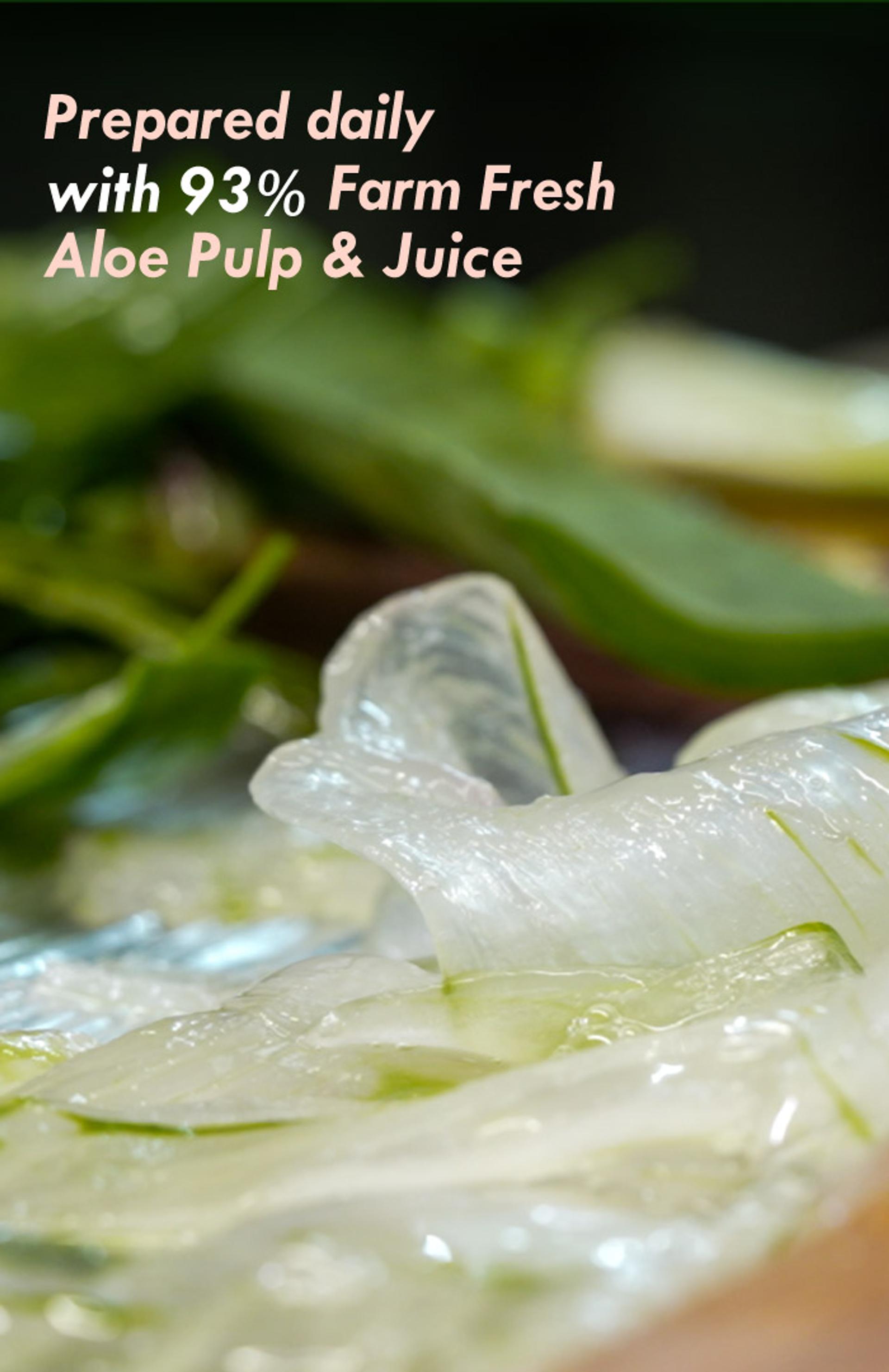 Aloe enhances internal water channels while beetroot minerals soften rough patches. Tomato’s natural vitamin A smooth dryness-related unevenness. Post-rinse, skin feels soft, cushioned, and visibly more supple.