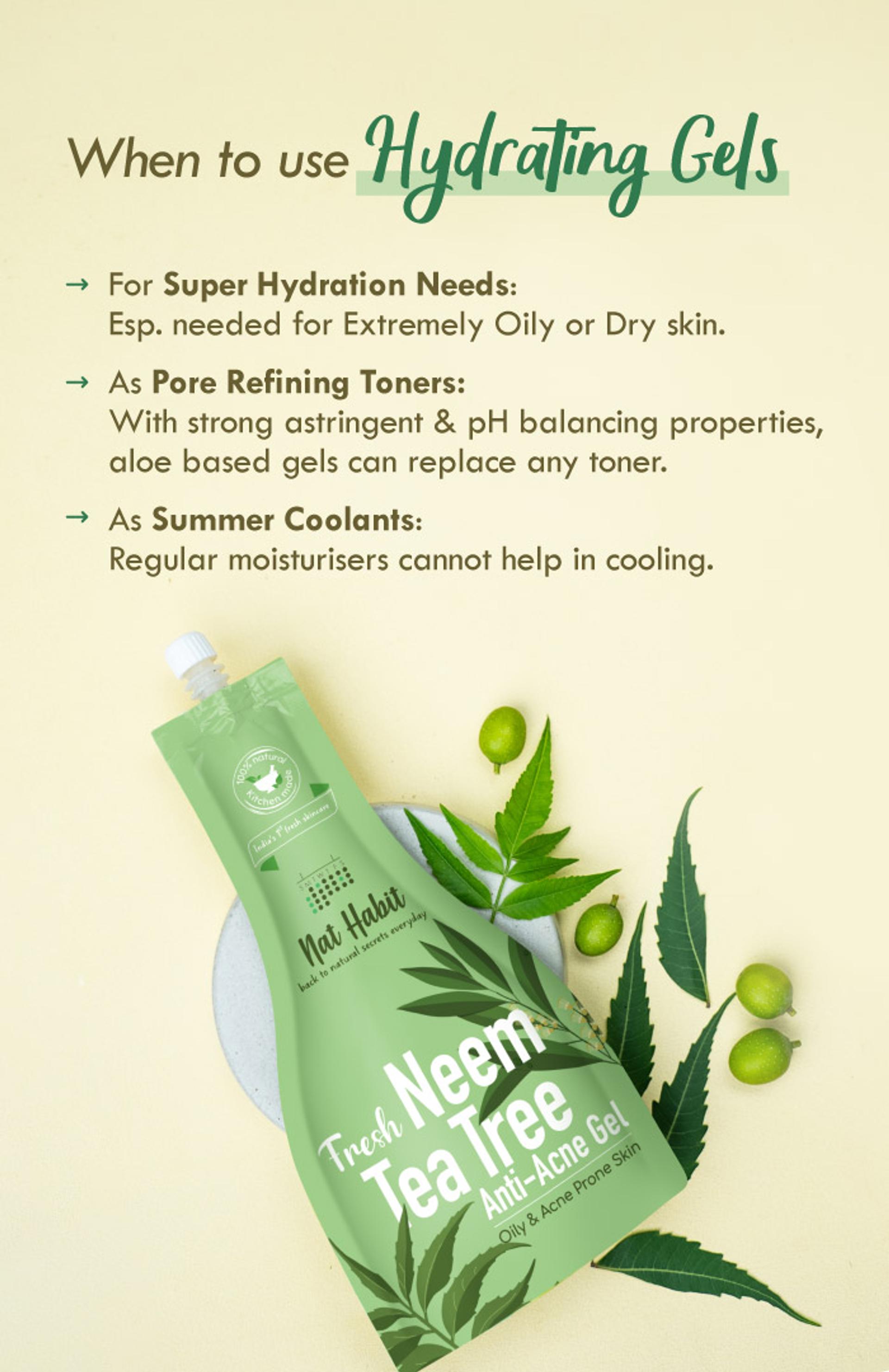 Skin needs a combination of hydration & oiling which may not always work out with creams. Aloe based gels provide excellent hydration. When combined with oils, they become super moisturisers.