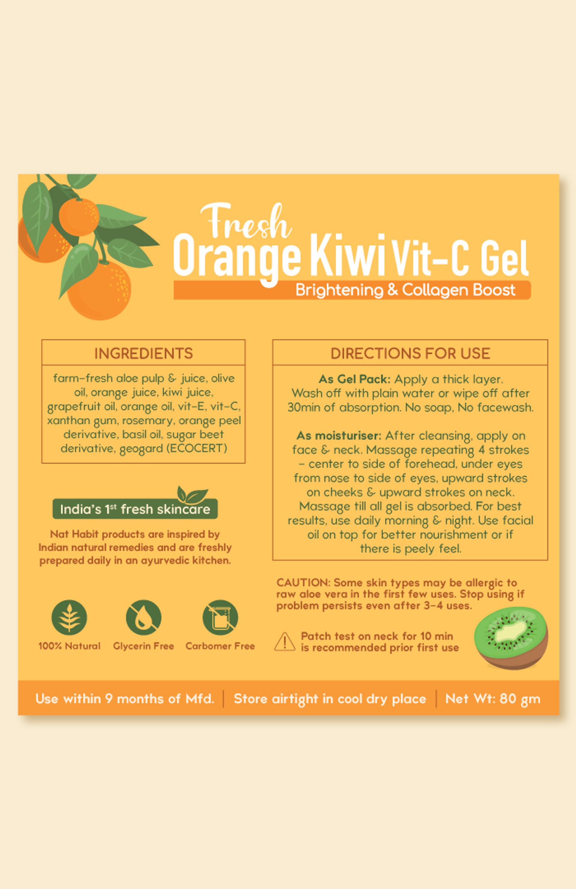 Full Ingredients List: farm-fresh aloe pulp & juice, olive oil, orange juice, kiwi juice, grapefruit oil, orange oil, vit-E, vit-C, xanthan gum, rosemary, orange peel derivative, basil oil, sugar beet derivative, geogard (ecocert).