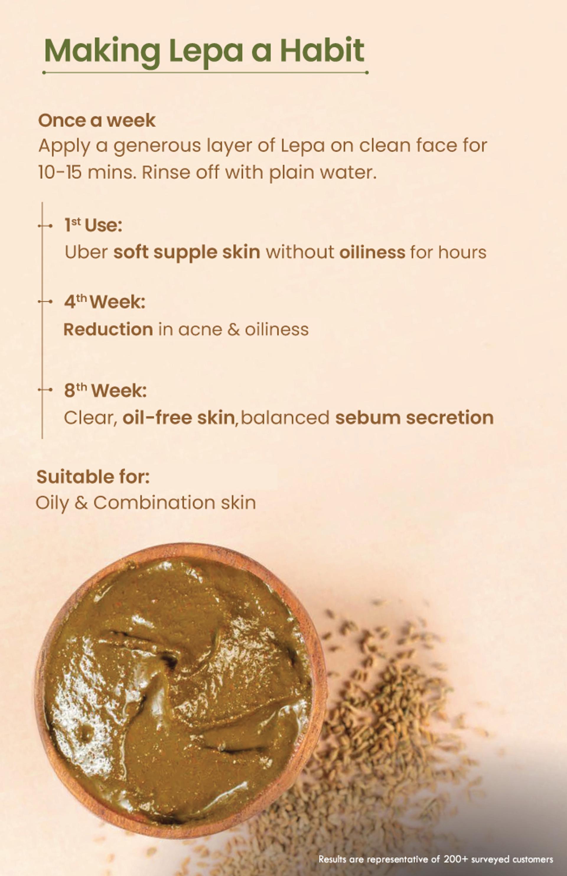 As the lepa sets, it forms a soft barrier that traps warmth and moisture, gently boosting blood flow and lymphatic drainage. This warm, moist micro-climate mimics the skin’s natural healing state, speeding up detox and preparing skin to absorb nutrients better.