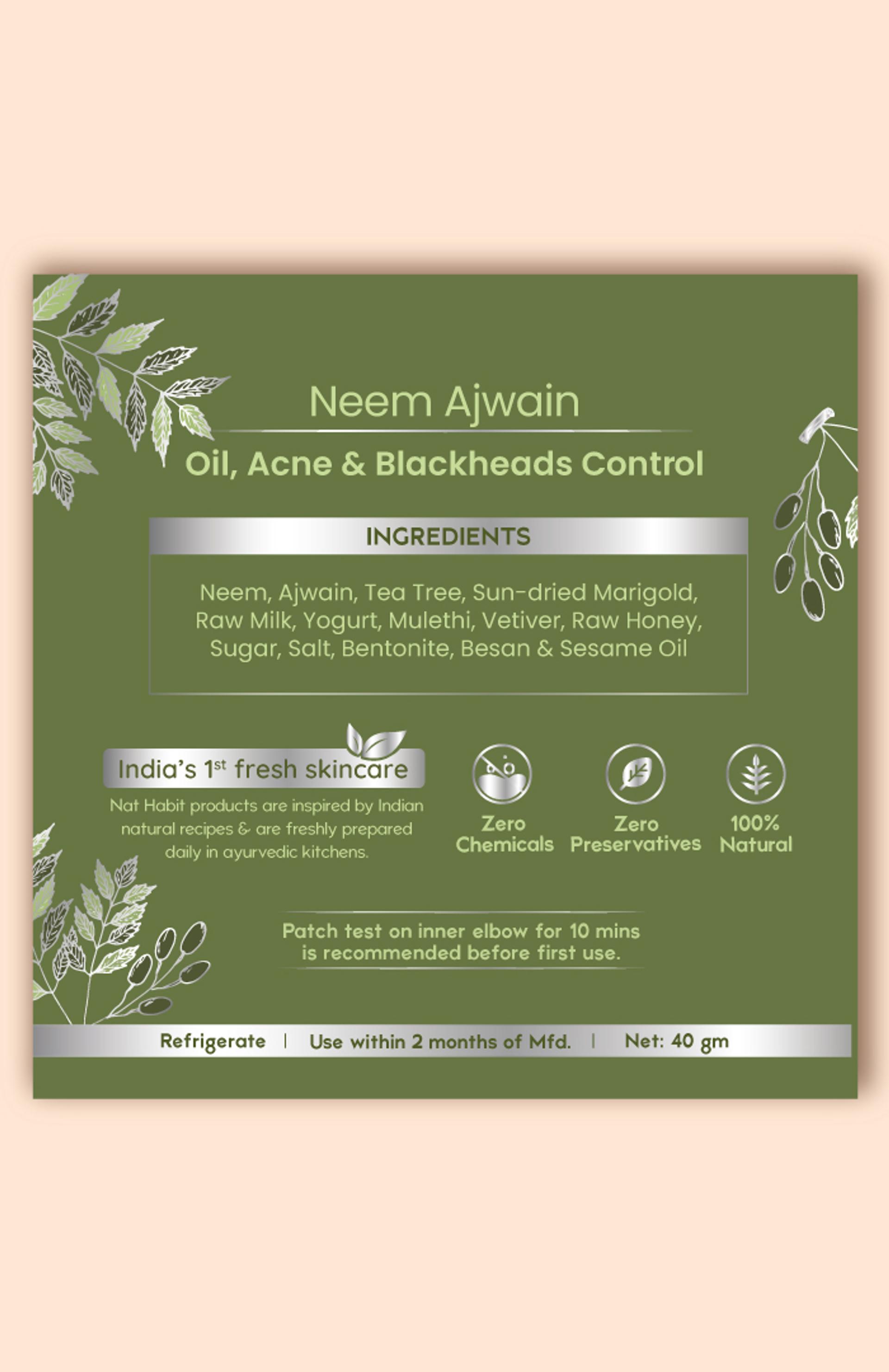 Neem, ajwain and marigold deliver potent terpenes and flavonoids that help regulate sebum and reduce the lipid oxidation that clogs pores. Bentonite and besan absorb excess oils without stripping, leaving skin fresh, balanced and matte for longer.