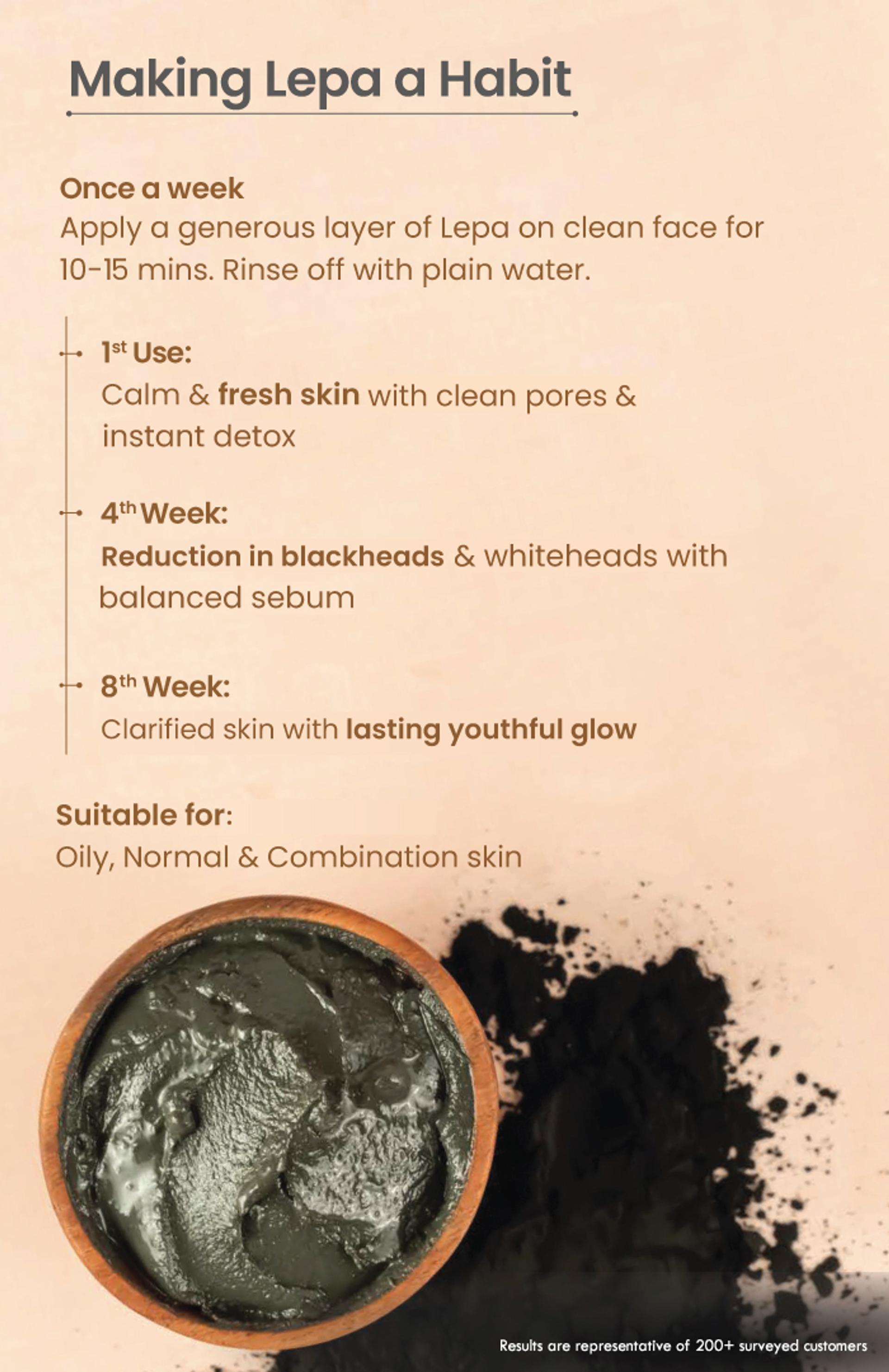 As the lepa sets, it forms a soft barrier that traps warmth and moisture, gently boosting blood flow and lymphatic drainage. This warm, moist micro-climate mimics the skin’s natural healing state, speeding up detox and preparing skin to absorb nutrients better.