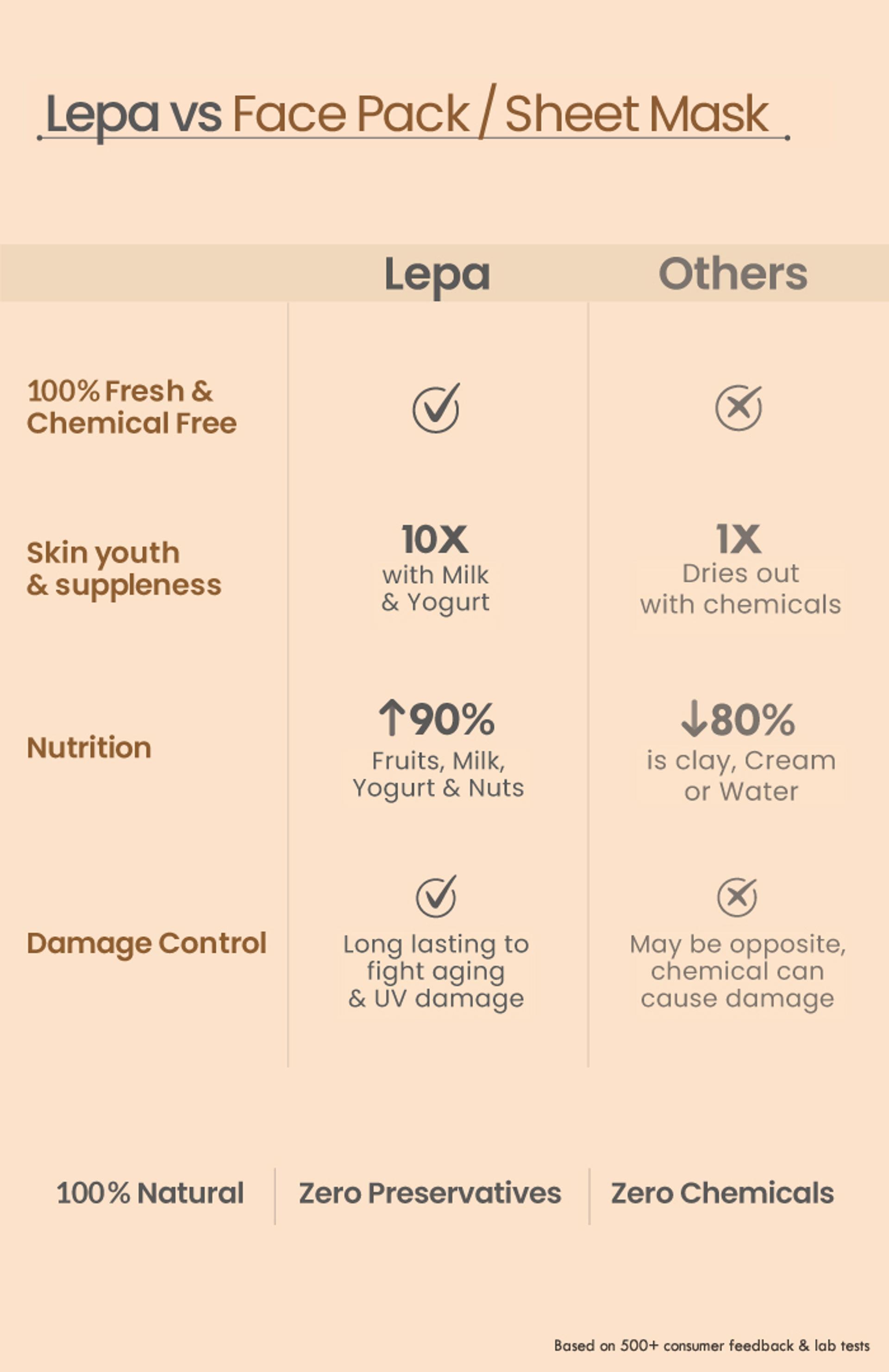 Made fresh daily in our Ayurvedic Kitchen, this pack is loaded with real milk, yogurt, nut oils, and potent herbal bioactives. It nourishes deeply, reaching every layer and cell, supporting their natural functions to energize, protect, and revive the skin for a supple, radiant glow.
