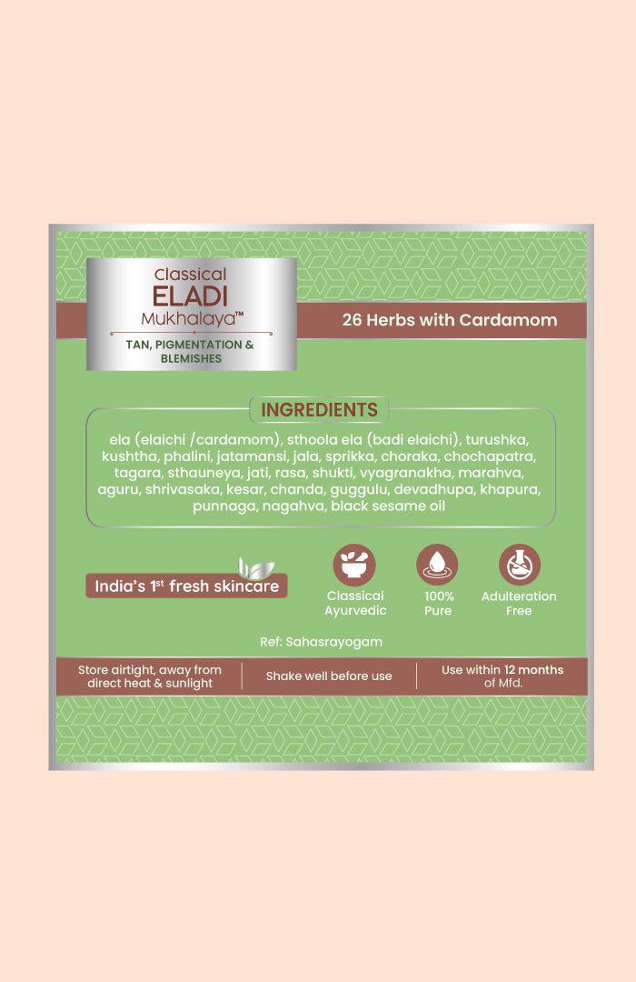 Through enhanced regeneration at the basal layer, the oil helps fade pigmentation, even out tone, and restore clarity. Elaichi stimulates basal cell activity, while Agnimanth, Shyonaka, and Plaksha improve microcirculation and reduce inflammation in deeper layers, ensuring uniform, healthy skin renewal from within.