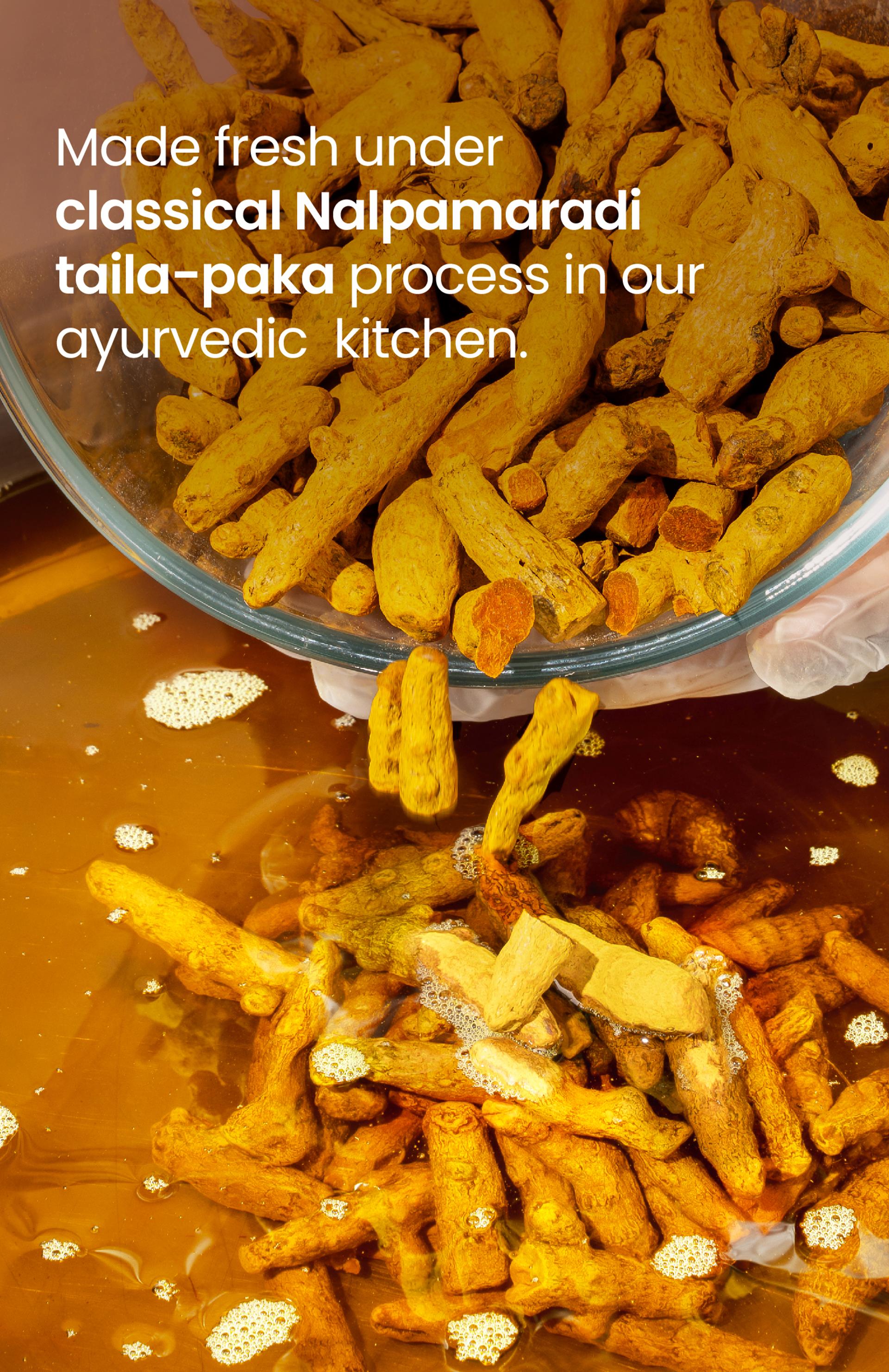 This deeply restorative oil accelerates skin healing by stimulating collagen production, lipid replenishment, and cellular regeneration. Haridra (Turmeric) works as a powerful antioxidant and anti-inflammatory, while Nyagrodha, Plaksha, and Aswatha activate tissue repair and restore moisture balance. Together, they rebuild damaged skin, improving resilience, texture, and elasticity.