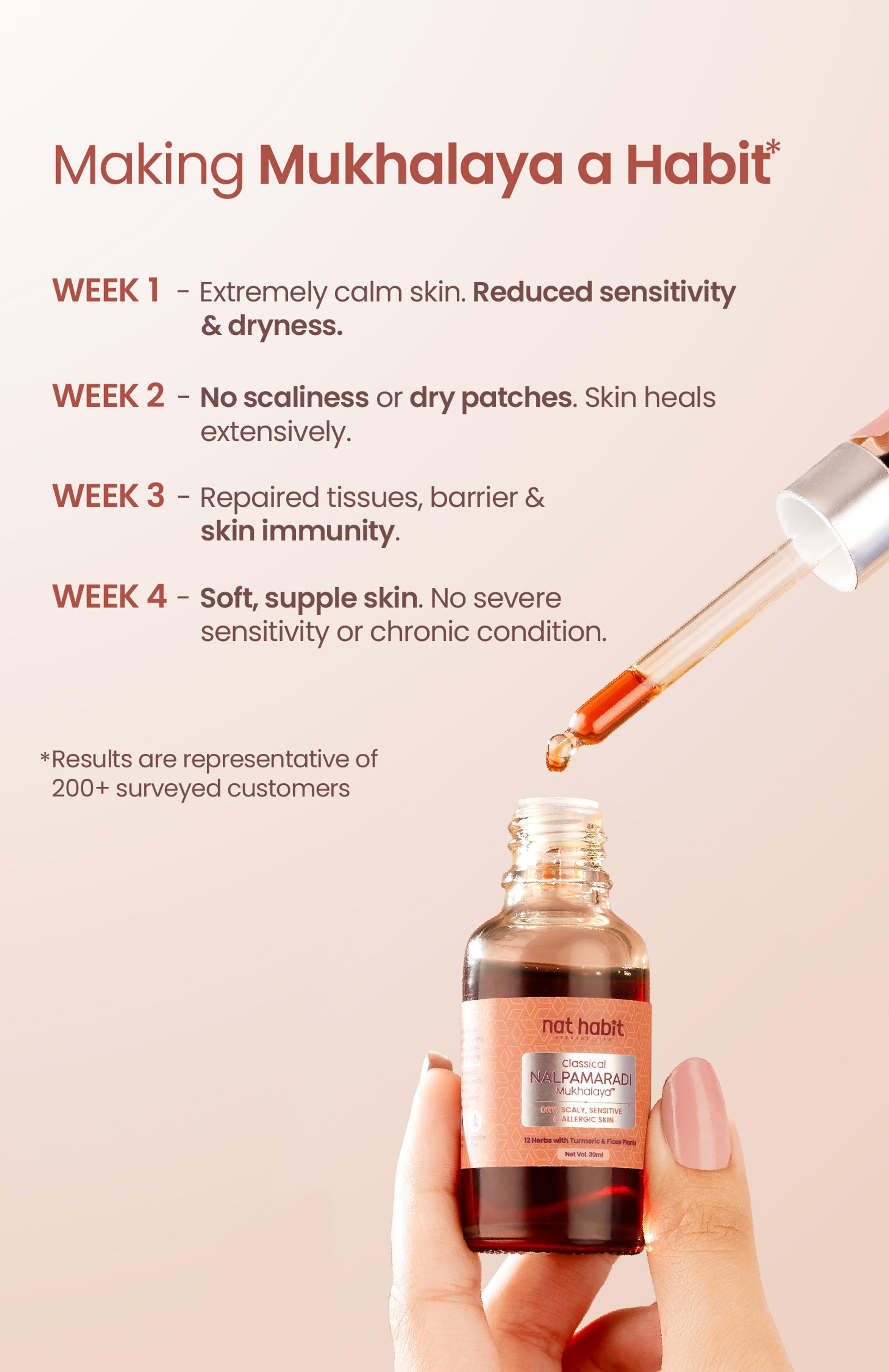 By enhancing the skin’s ability to produce and retain Natural Moisturising Factors (NMFs), this oil transforms rough, flaky skin into soft, supple texture. Sesame Oil nourishes deeply, restoring lost oils and lipids, while herbs like Usheer support hydration, calm tissues, and relieve chronic dryness. Skin stays plump, hydrated, and comforted.