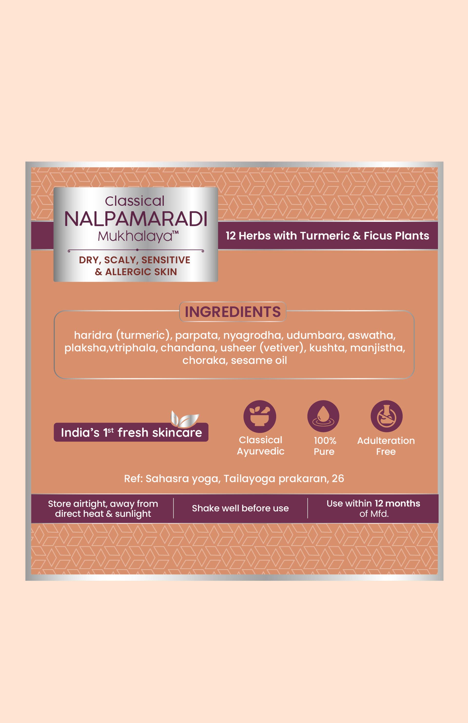 Targeting the root of skin sensitivity, this blend reinforces the epidermal barrier and reduces inflammation. Ficus herbs (Nyagrodha, Udumbara) and Chandana (Sandalwood) deliver astringent and calming actions, while Haridra soothes inflammatory conditions like eczema and scaling. Sesame oil’s essential fatty acids lock in moisture, prevent TEWL (trans-epidermal water loss), and protect against external irritants.