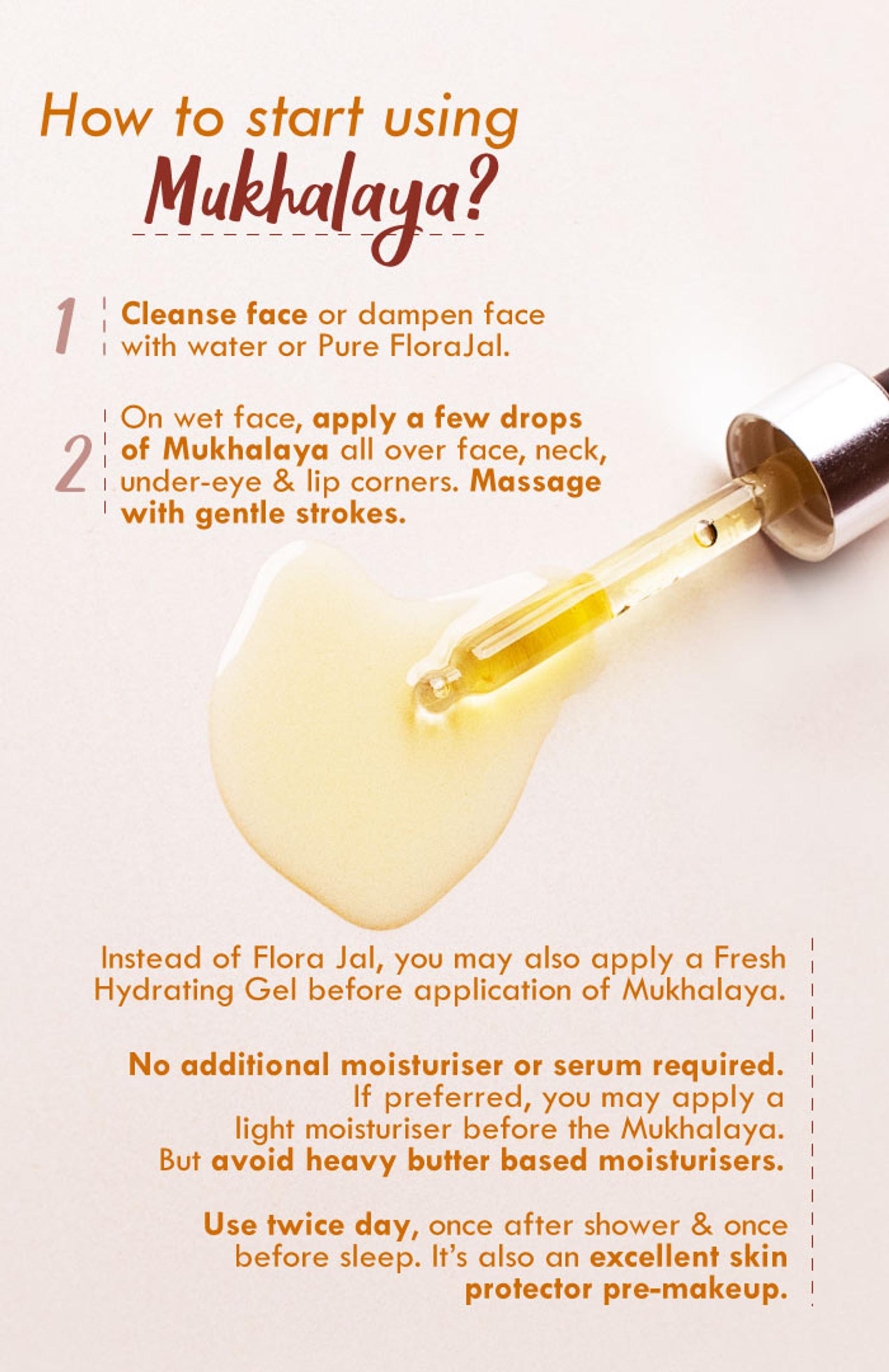No additional moisturiser or serum required. If preferred, you may apply a light moisturiser before the Mukhalaya. But avoid heavy butter based moisturisers.