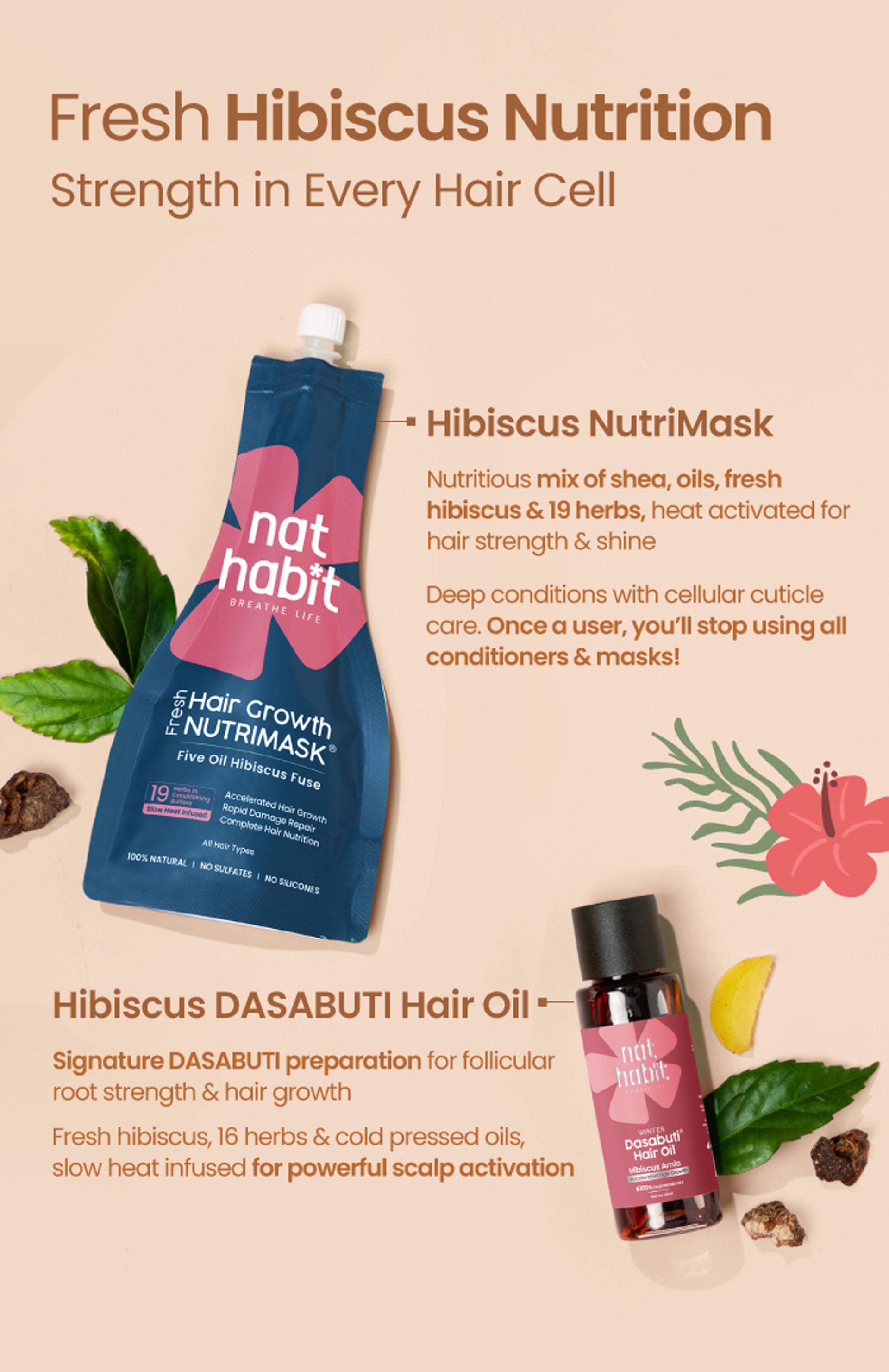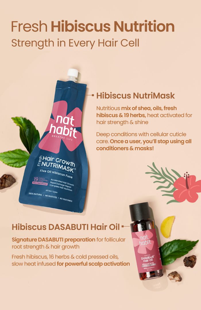 Signature DASABUTI prepared with fresh hibiscus, 16 herbs & cold pressed oils over a 10HRS+ slow heat infusion. Unlike regular mineral/paraffin loaded oils, it is truly nutrition activated for immense strength, follicle stimulation and scalp biome balance hence, showing visible hair growth boost with regular use.