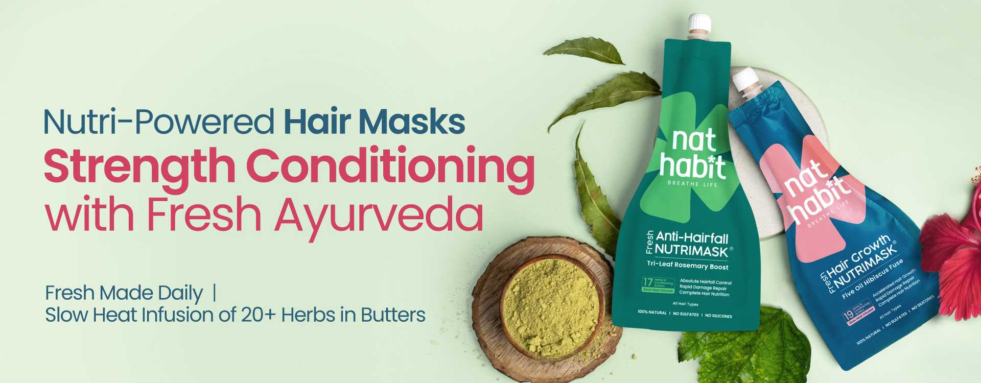 Creamy Hairmasks made of a large variety of oils, butters, fresh leaves, flowers, amla, shikakai, bhringraj, fenugreek & more.
