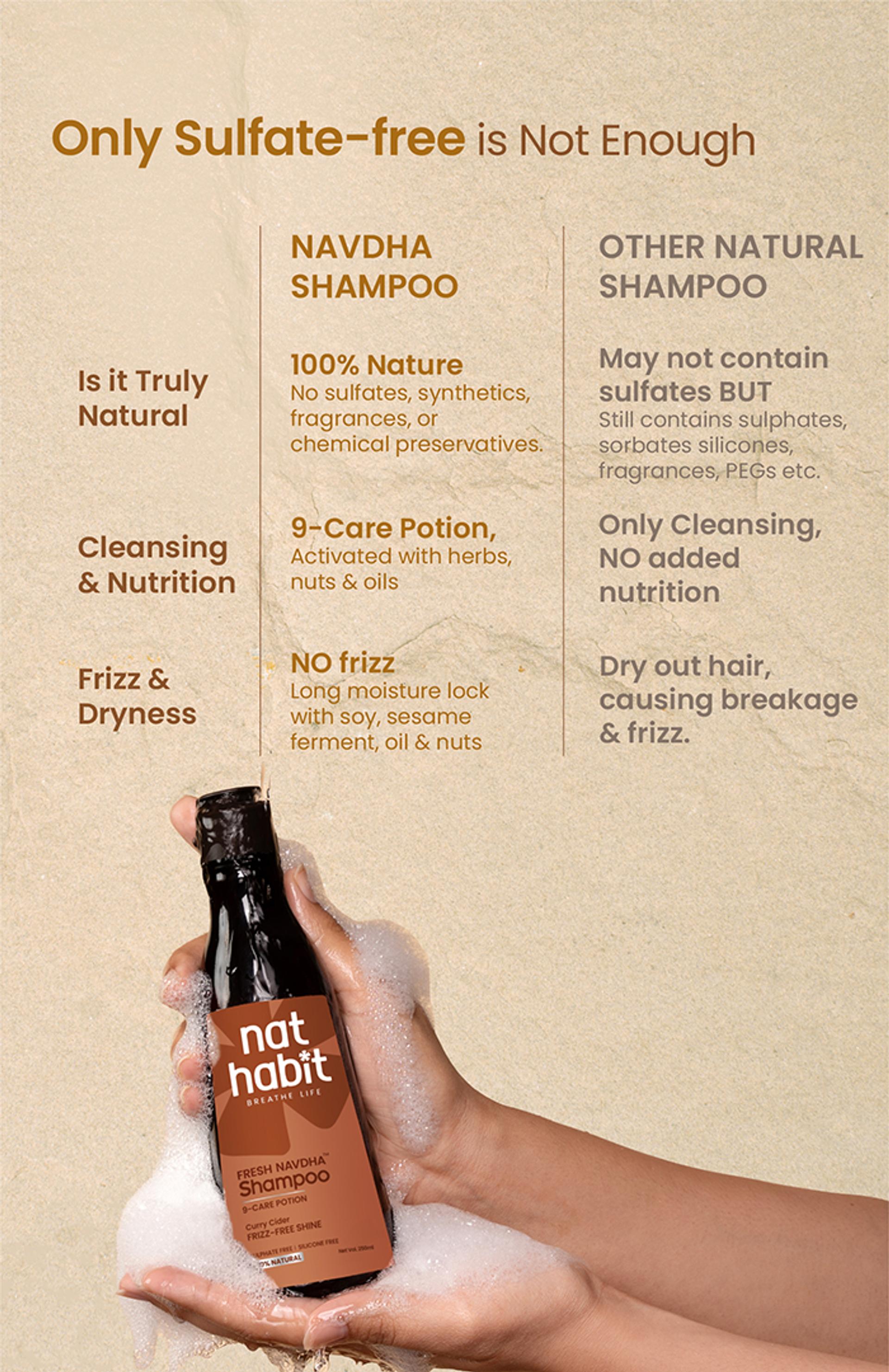 - Unlike regular shampoos, Navdha shampoo won’t give heavy foam or lather.