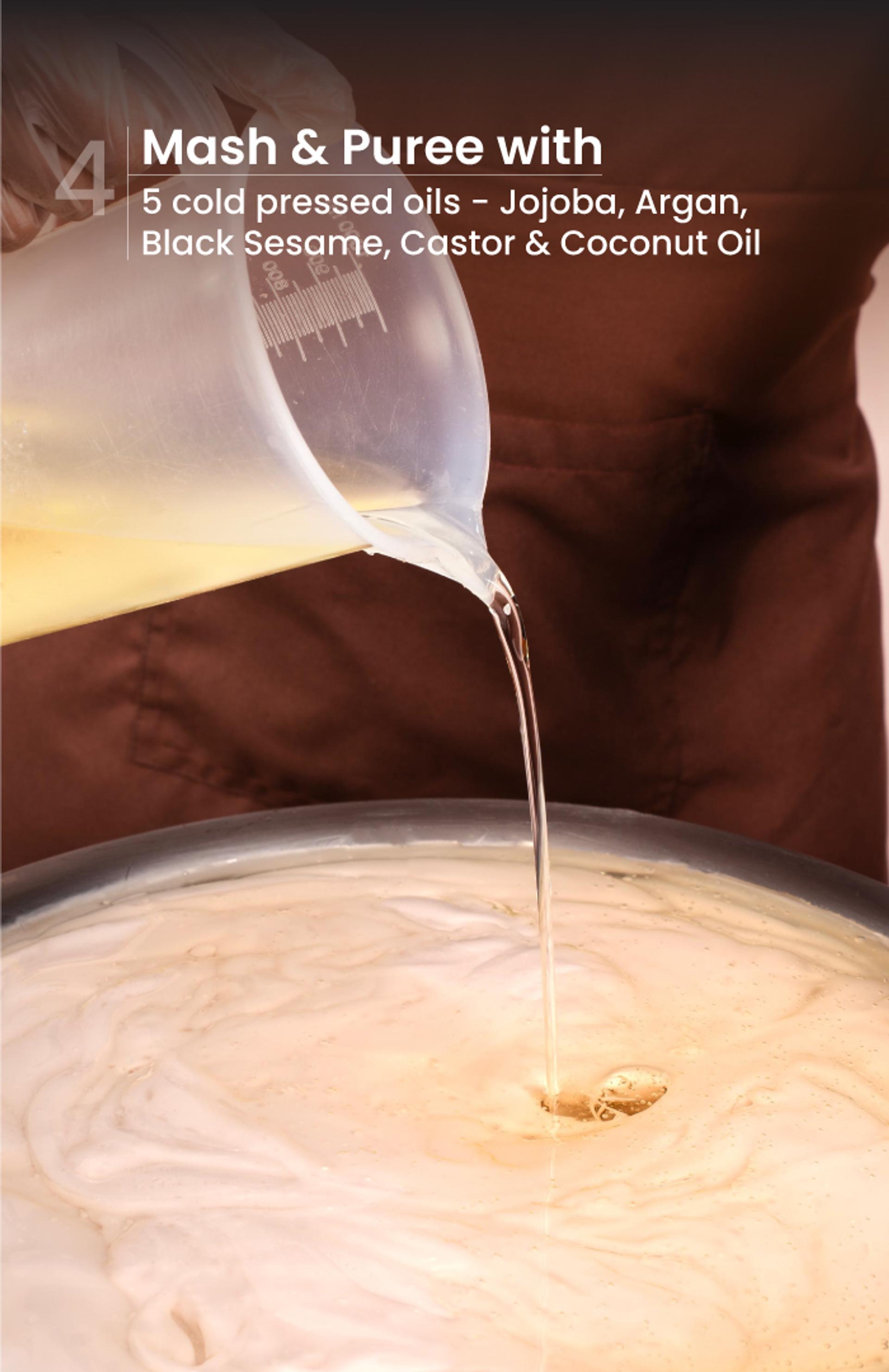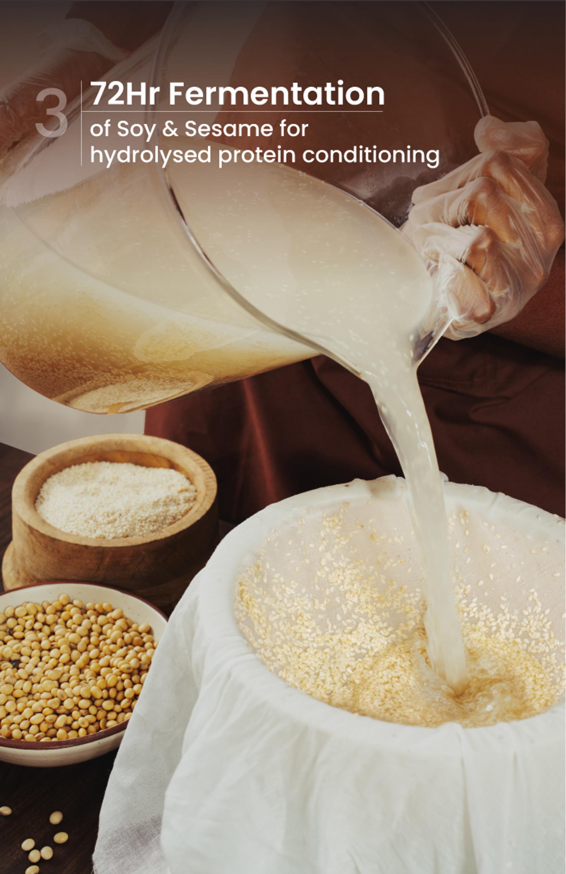 Rich protein of fermented soy & sesame, fatty acids of pure oils and active nutrients of herbs penetrate through open cuticles, retaining moisture, promoting cortex & sealing in cuticles for deep, lasting shine.