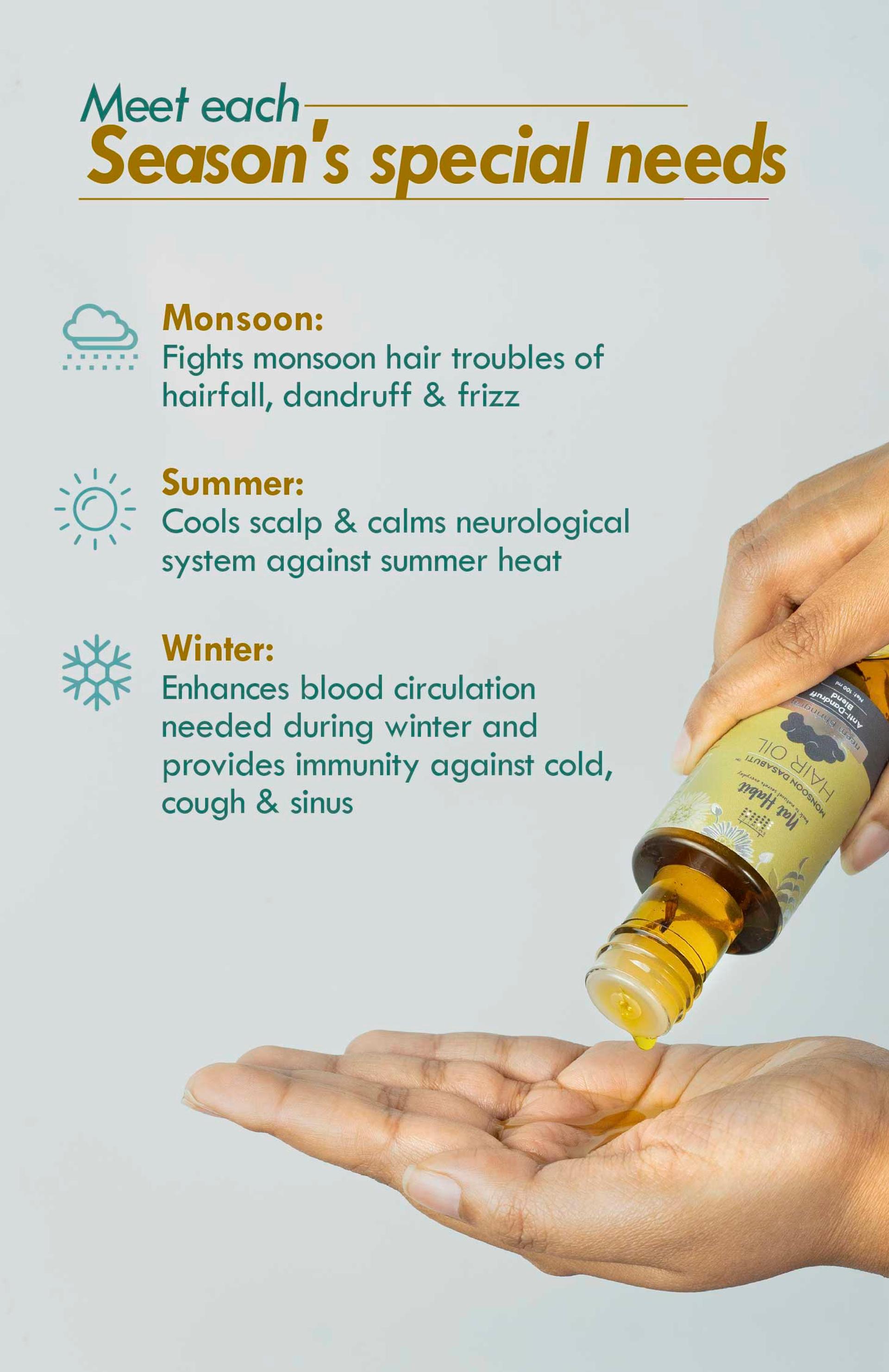 This oil is specially made with pH balancing & root strengthening ingredients for Monsoon conditions.
