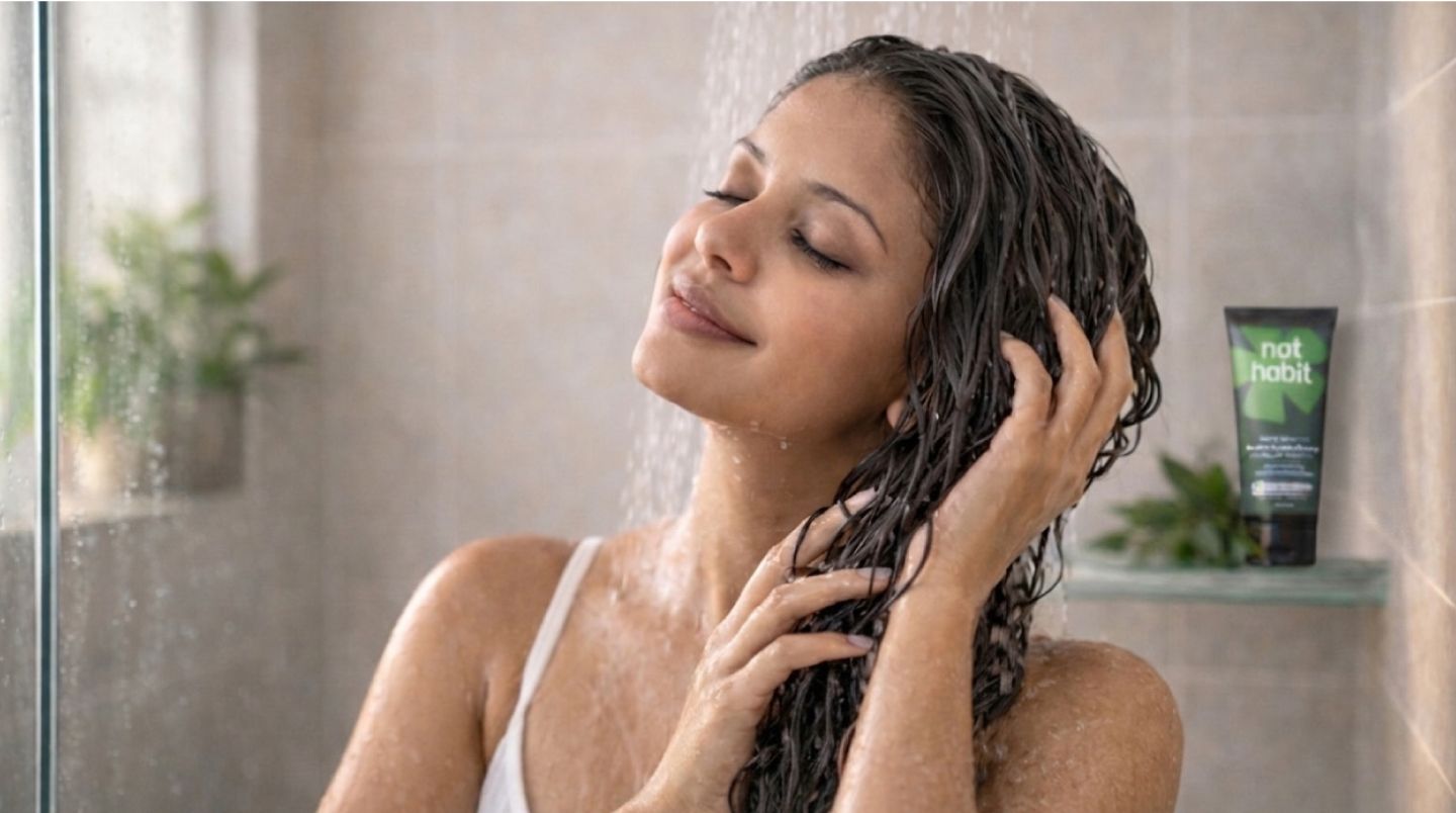 Activated with an oleo-protein , it goes beyond silicone's surface coating to repair from cortex to cuticle, while neem's anti-fungal action and green tea's soothing EGCG calm the scalp underneath bringing dandruff-stressed hair back to health, one wash at a time.