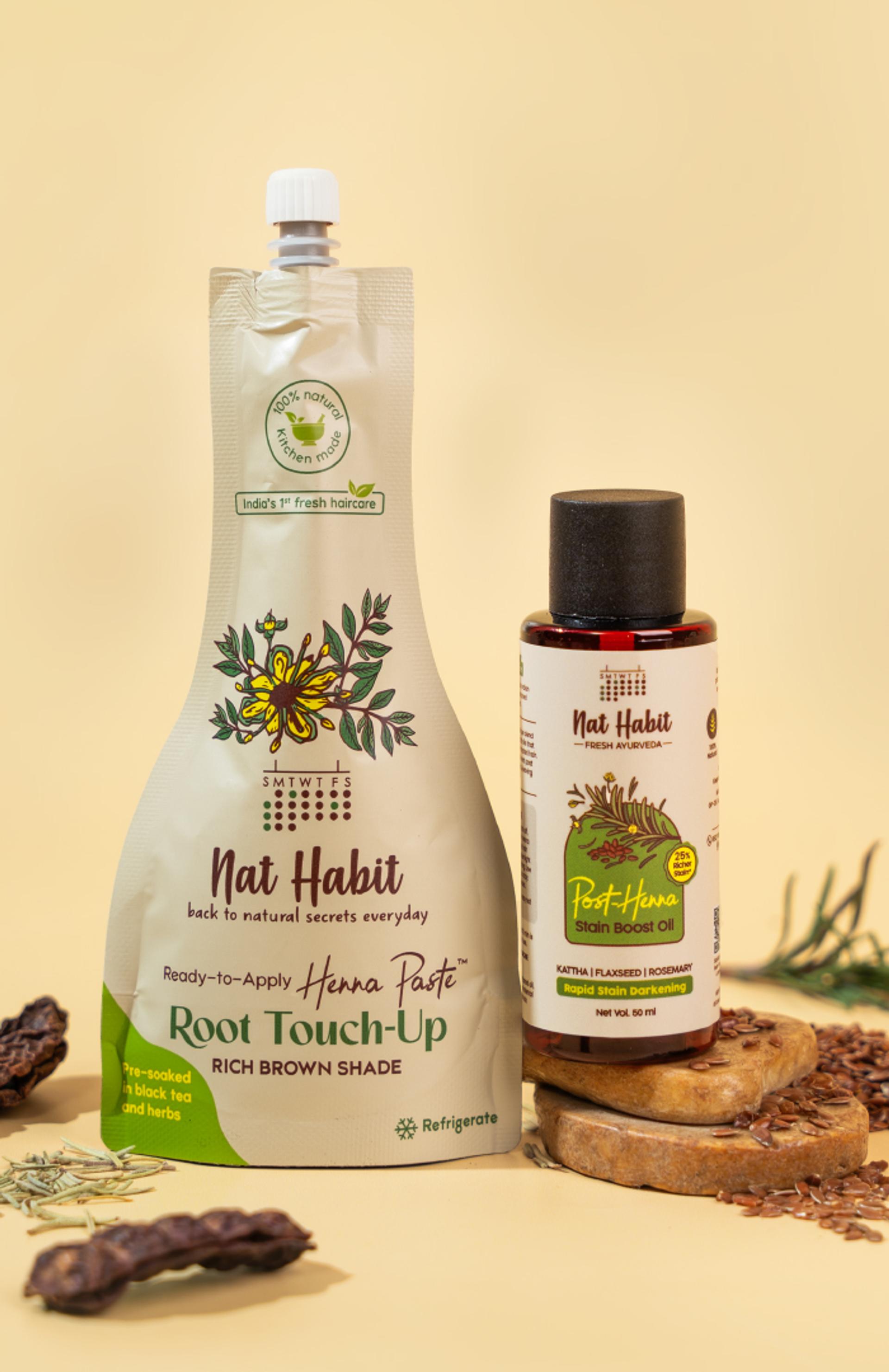 *Results seen after 2 uses of stain boost oil, post henna application. Based on internal studies conducted on human hair.