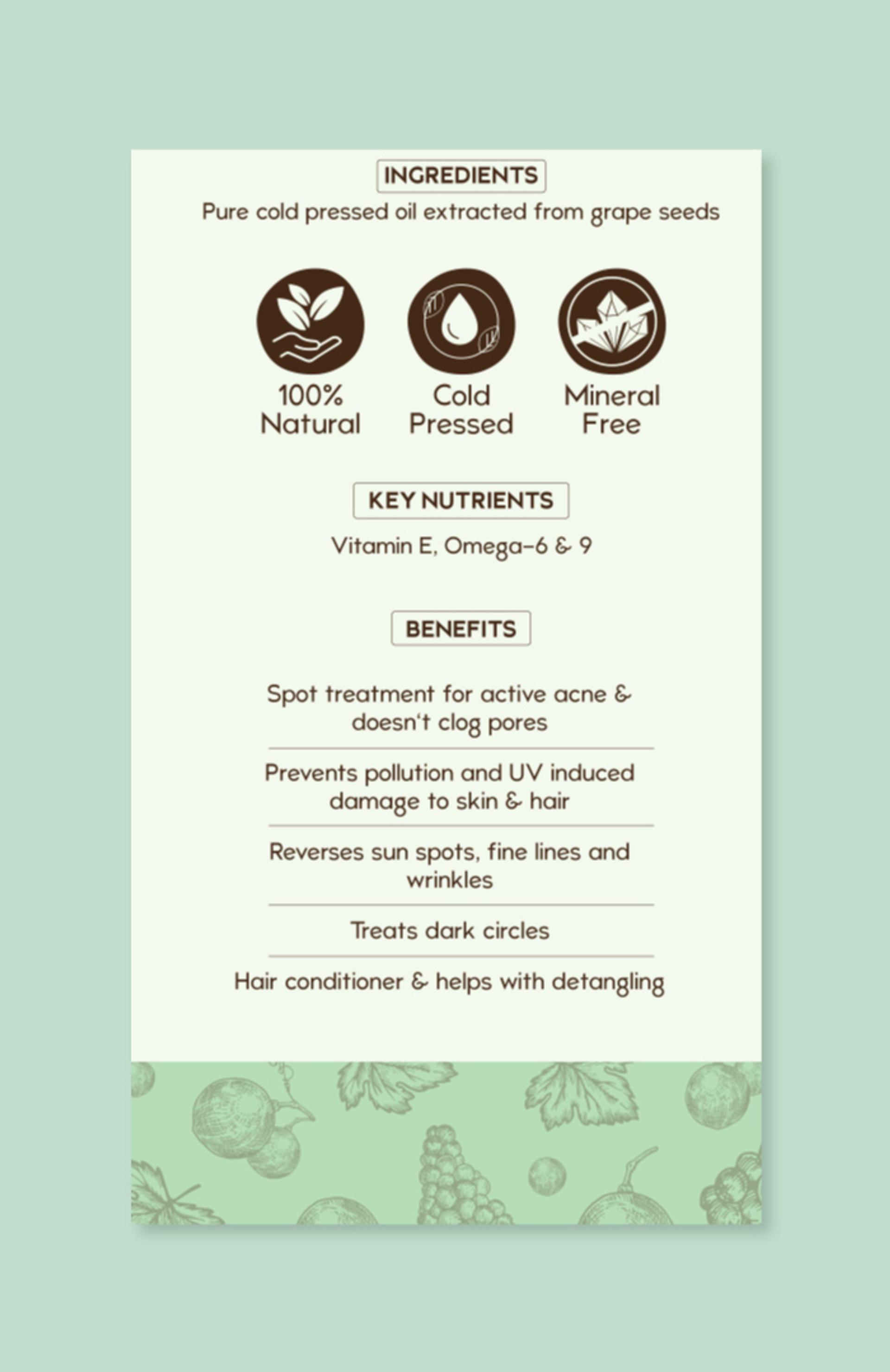 Only Pure, Cold-Pressed Grapeseed Oil
