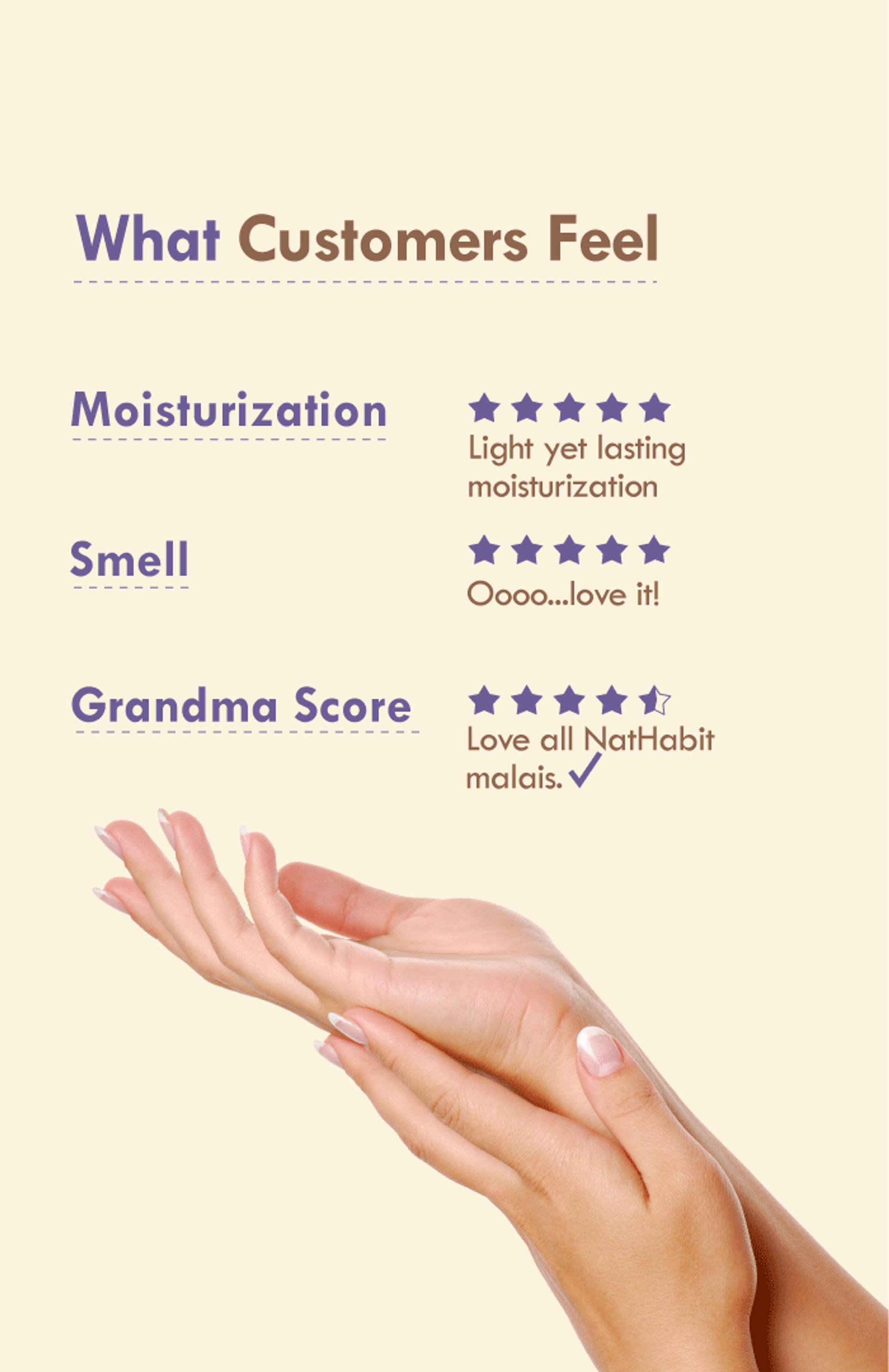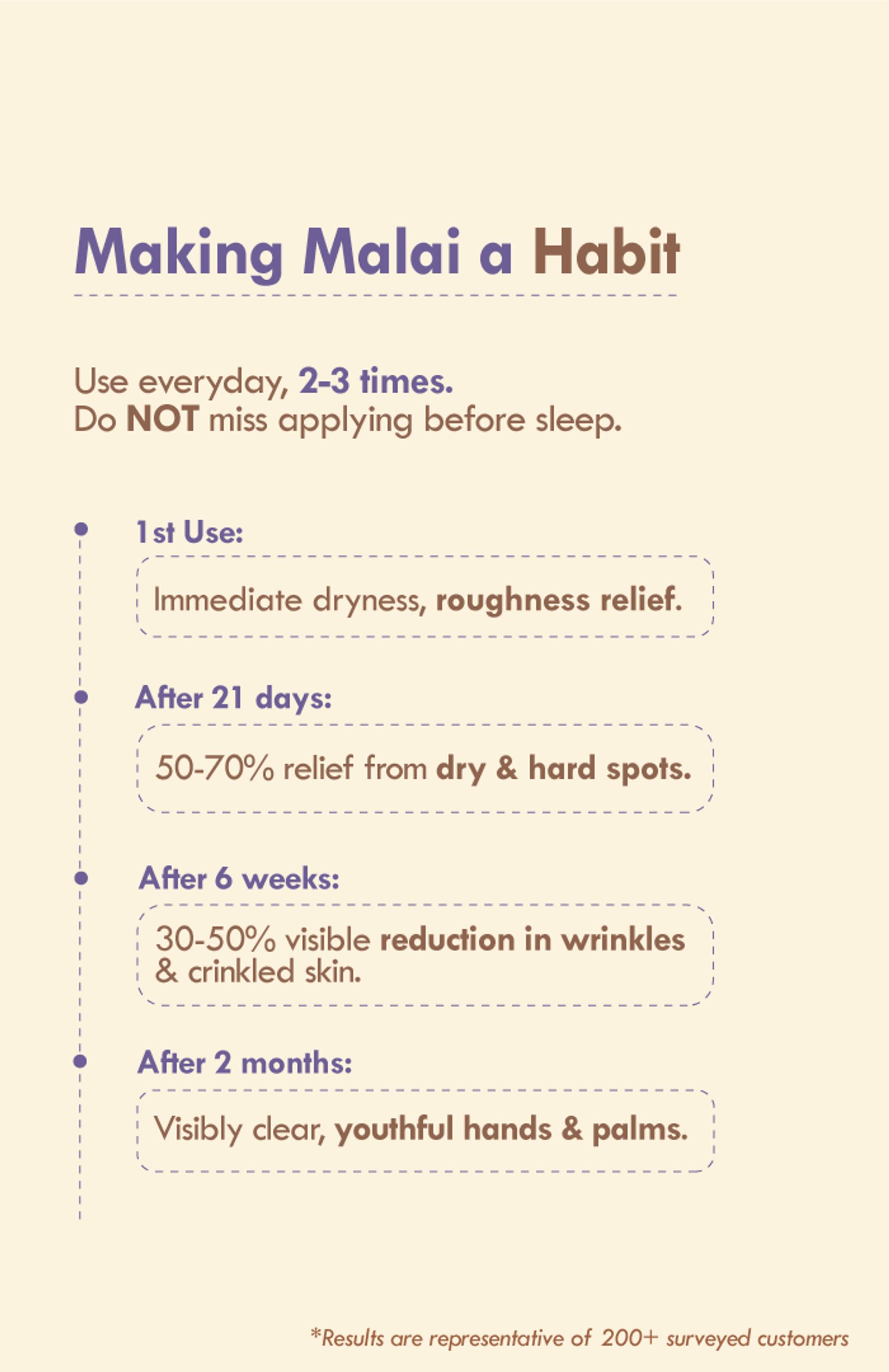 Palms have low underlying fatty tissue that leads to loss of skin elasticity and wrinkling, therefore, requiring a collagen & elastin boost.
