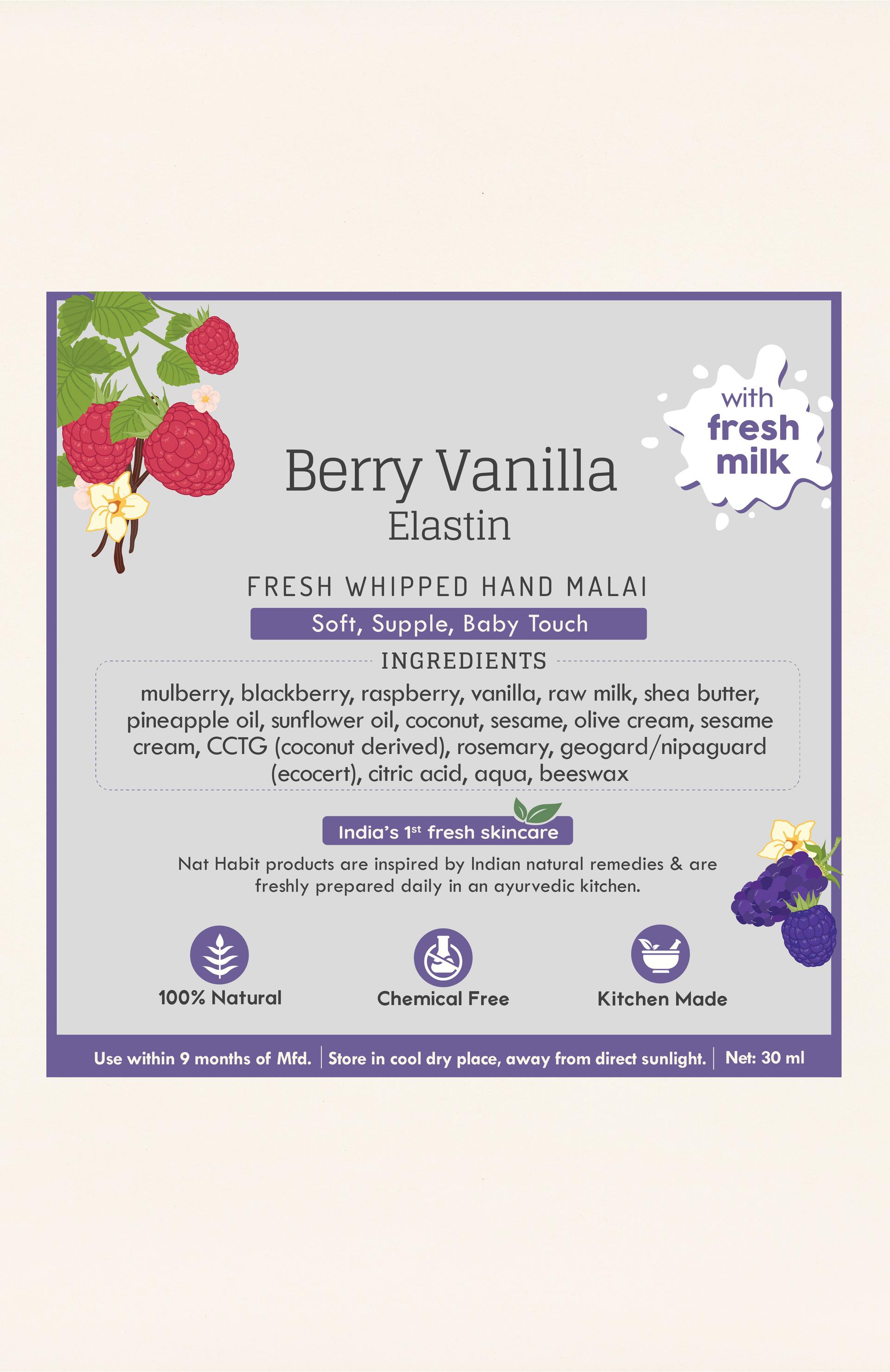 Full Ingredient List: Mulberry, blackberry, raspberry, vanilla, raw milk, shea butter, pineapple oil, sunflower oil, coconut, sesame, olive cream, rosemary, epsom salt, geogard/nipaguard (ecocert), aqua, beeswax.