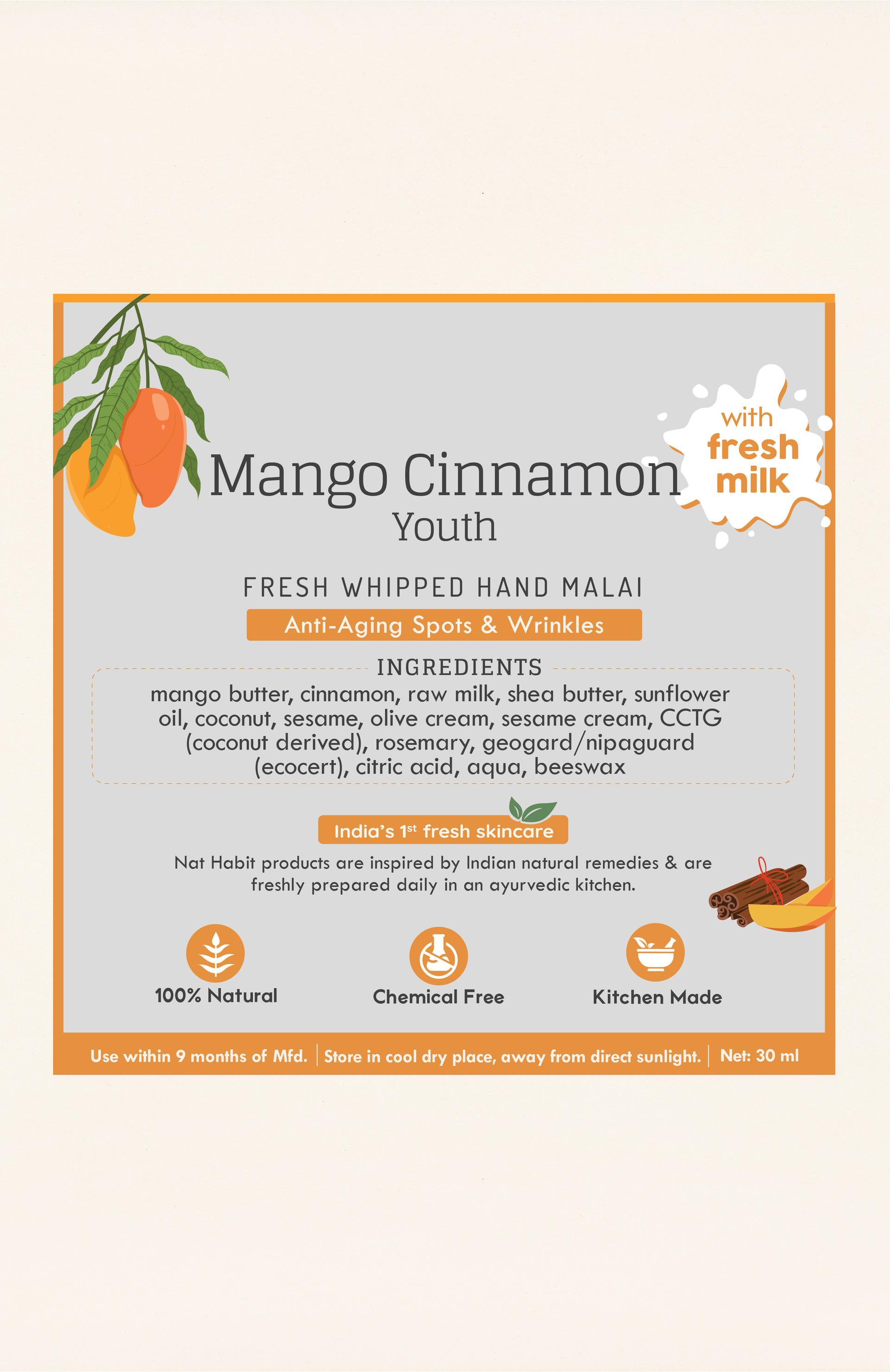 Full Ingredient List: Mango butter, cinnamon, raw milk, shea butter, sunflower oil, coconut, sesame, olive cream, rosemary, epsom salt, geogard/nipaguard (ecocert), aqua, beeswax