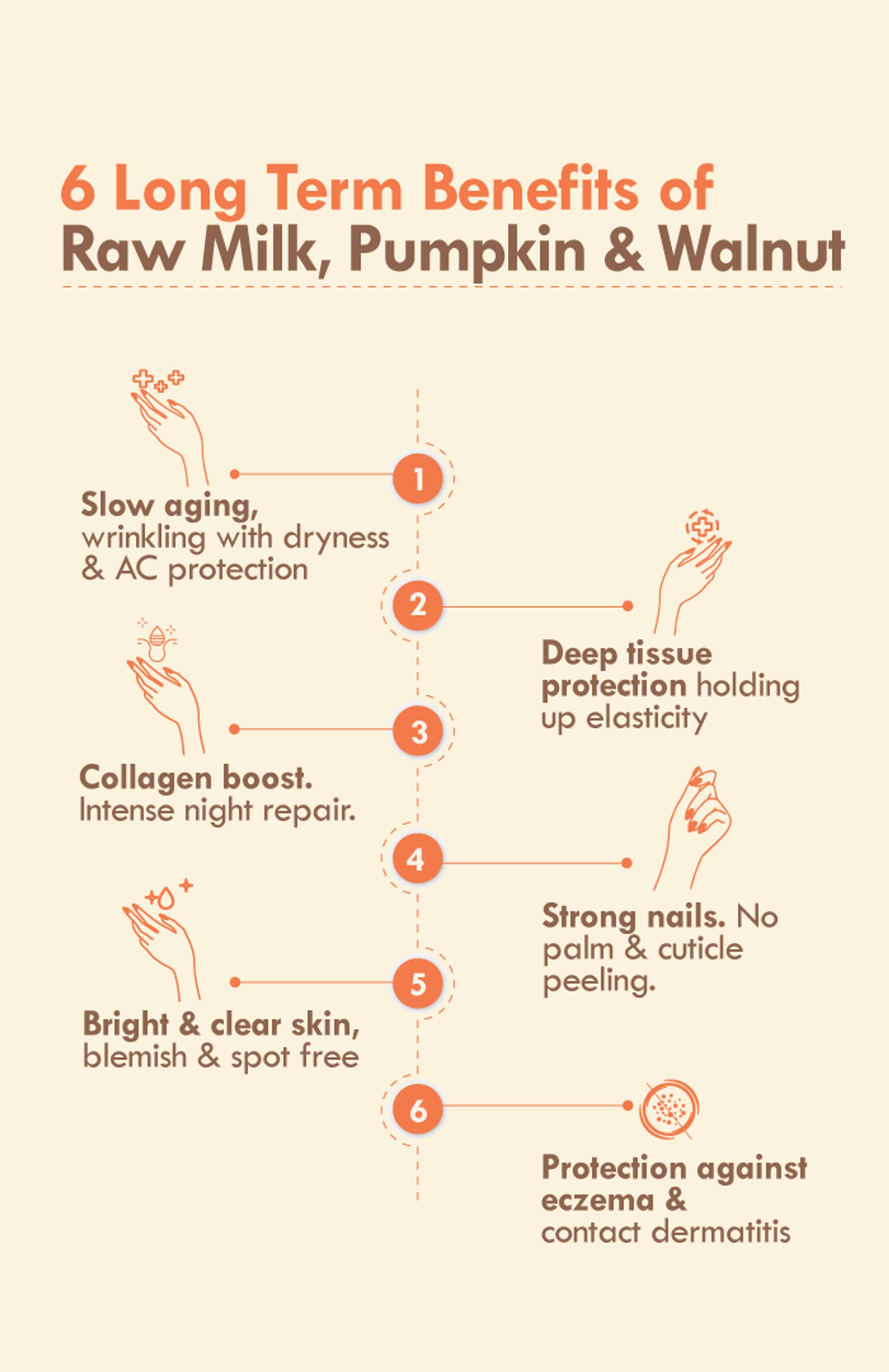 Full Ingredient List: Pumpkin seed, walnut, almond, raw milk, shea butter, coconut, sesame, sunflower oil, olive cream, clove, lotus, rose, rosemary, epsom salt, geogard/nipaguard (ecocert), aqua, beeswax