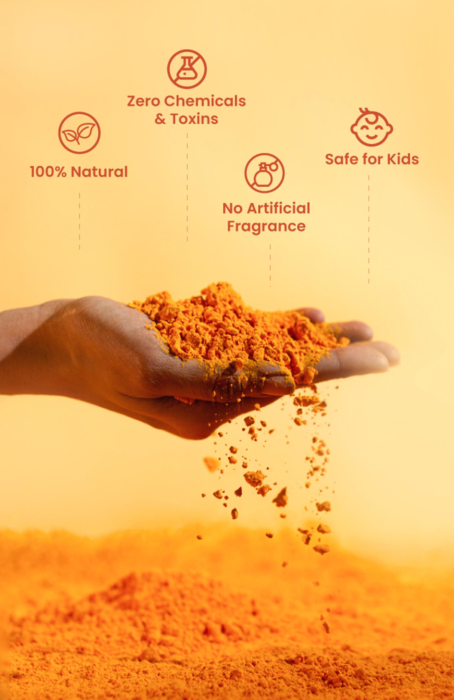 Easy to wash off, beneficial to derma with neem, rose & turmeric.