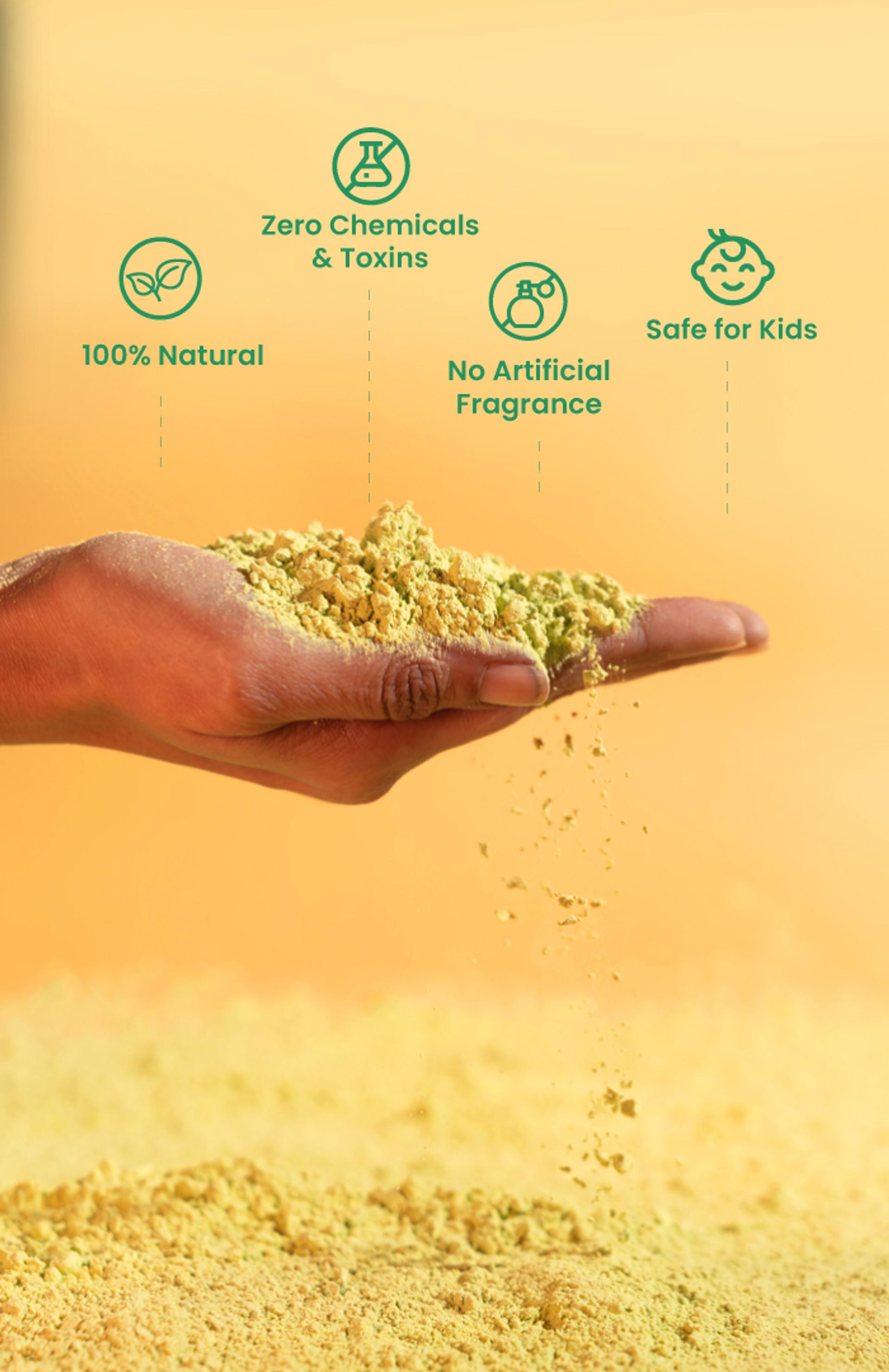 Easy to wash off, beneficial to derma with neem, rose & turmeric.