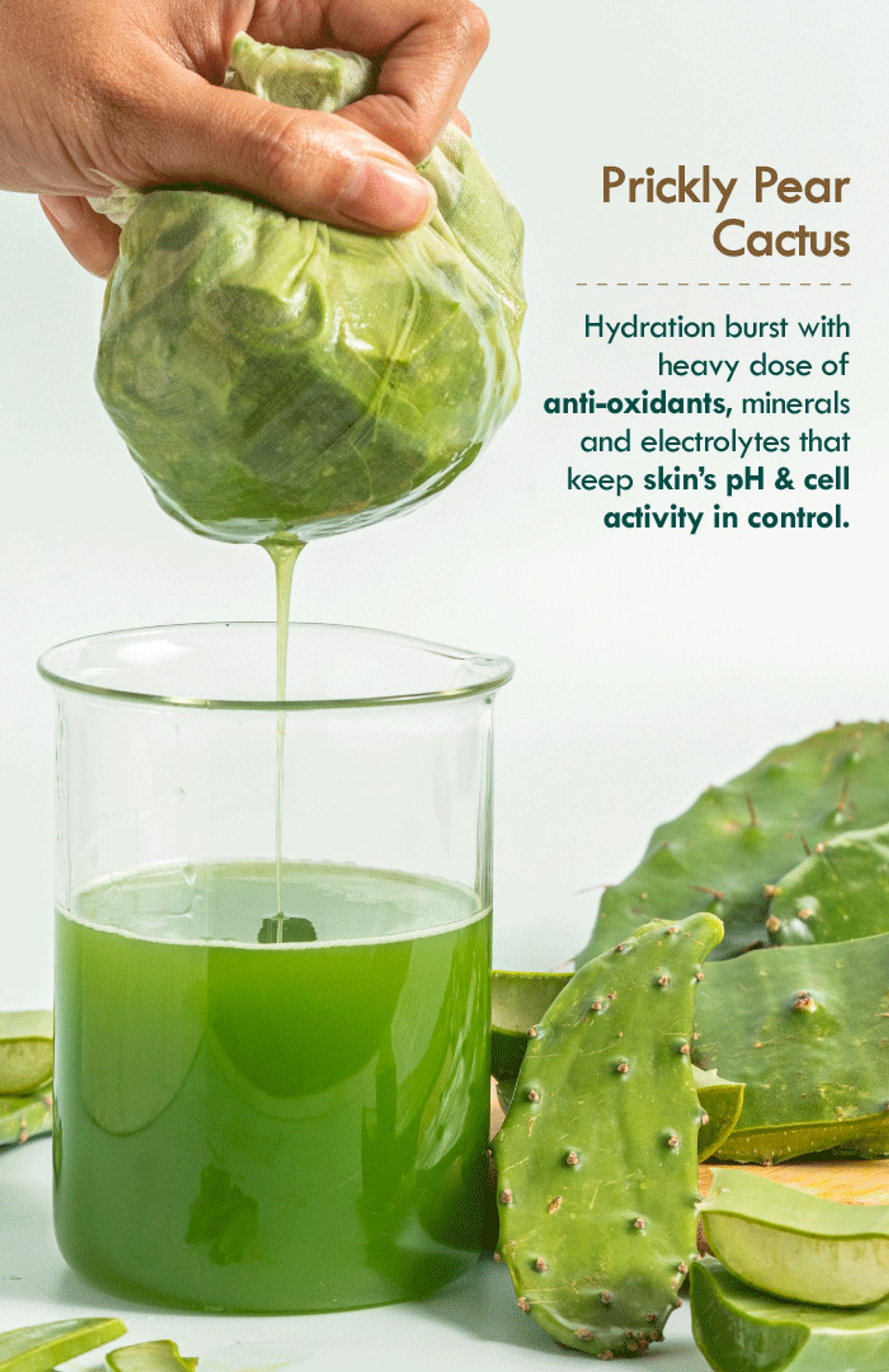Bioactive electrolytes of cactus allow cells to absorb and retain water effectively. They also promote ceramides & lipid synthesis while maintaining an optimum pH, biome and barrier.