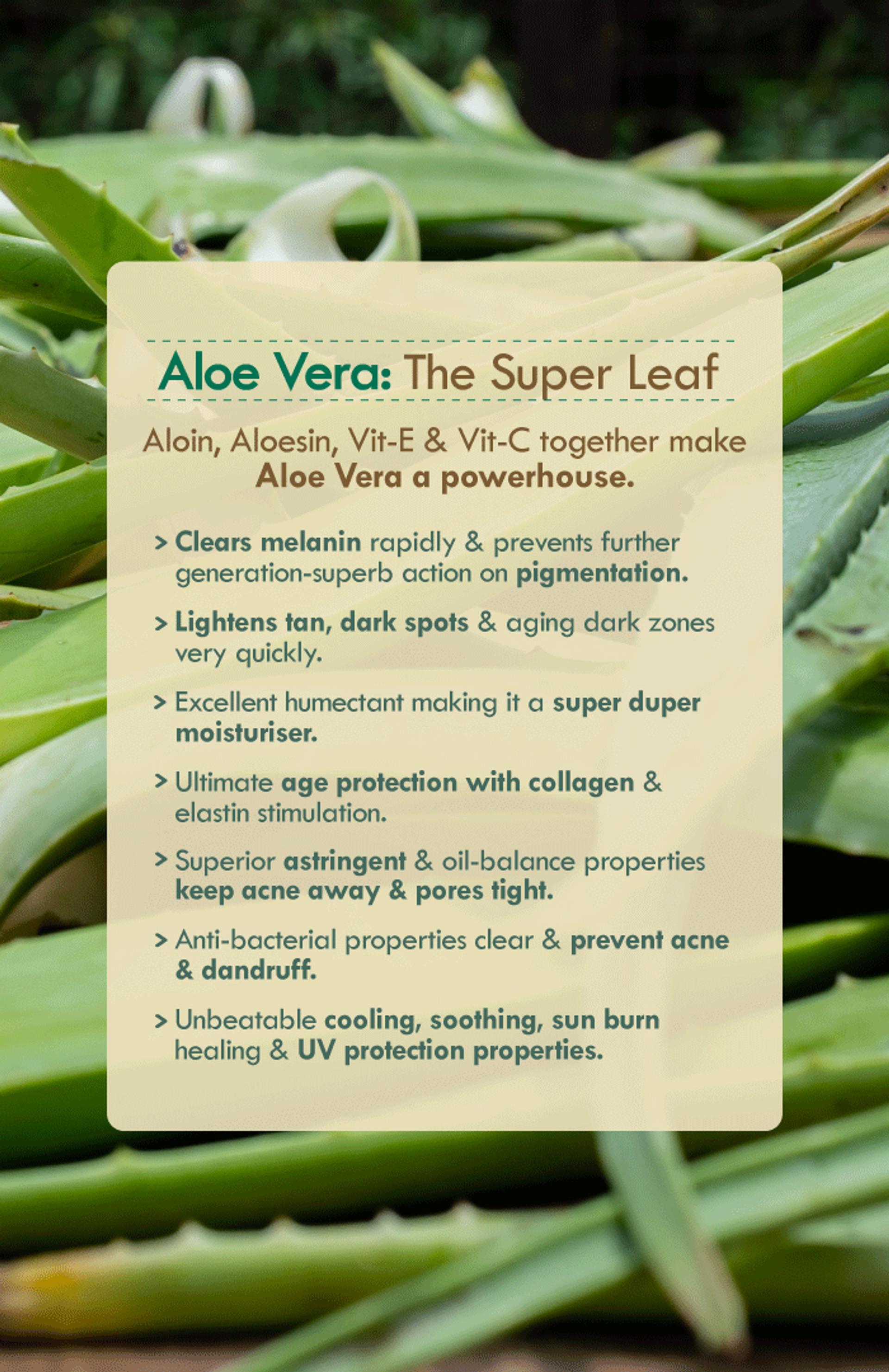 Aloin, Aloesin, Vit-E & C together makes aloe vera a powerhouse