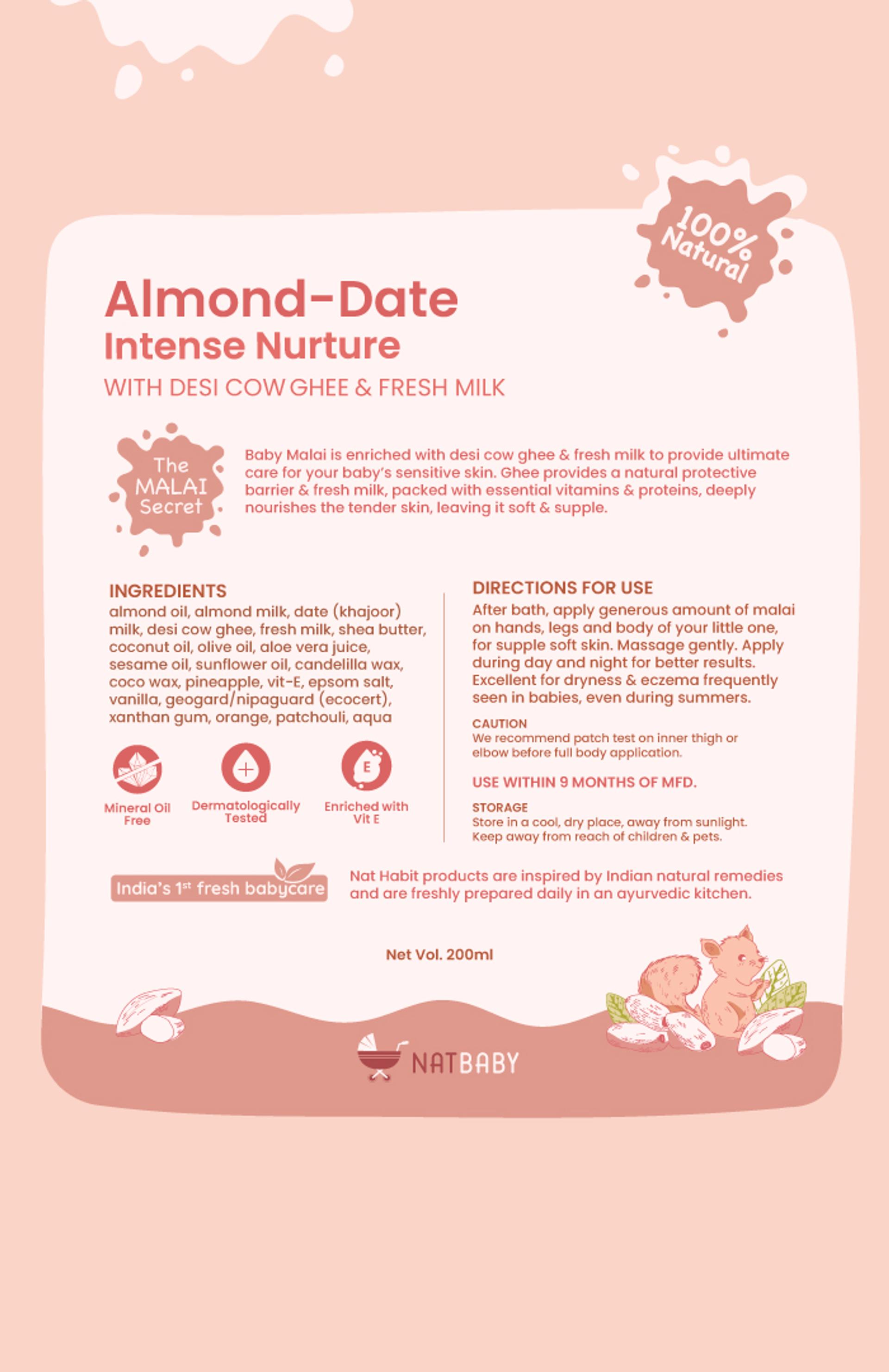 Baby’s semi-permeable skin absorbs the richness of Malai’s active vitamins, fats, proteins, and nutrients. It helps in delivering deep moisture, protecting the skin barrier, and helping regulate their body temperature to leave soft, supple skin with loads of giggles. MALAI care - 100% Natural. 0% Chemicals.