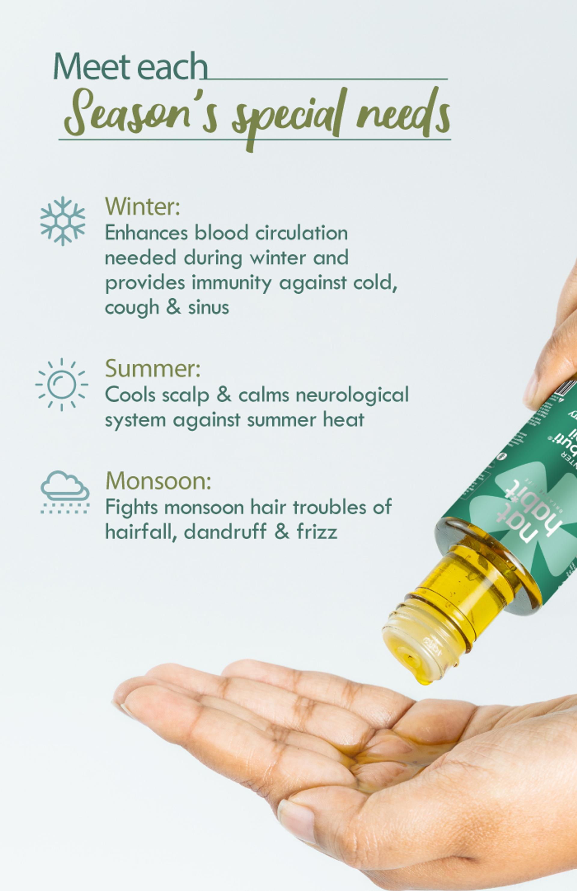 This deeply nourishing oil penetrates scalp layers to strengthen root bulbs at the cellular level, countering winter-triggered root fatigue, dryness, and ageing. It restores scalp moisture balance and dramatically reduces seasonal hair fall from brittle roots and weakened follicles.