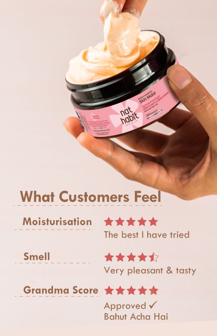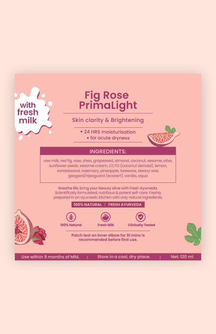 Raw milk’s lactic acid gently exfoliates dead skin cells and supports cellular renewal. Fig's bioactive enzymes and antioxidants inhibit melanin overproduction and reduce blemishes. Rose soothes irritated skin, reducing redness and calming acne-prone areas.