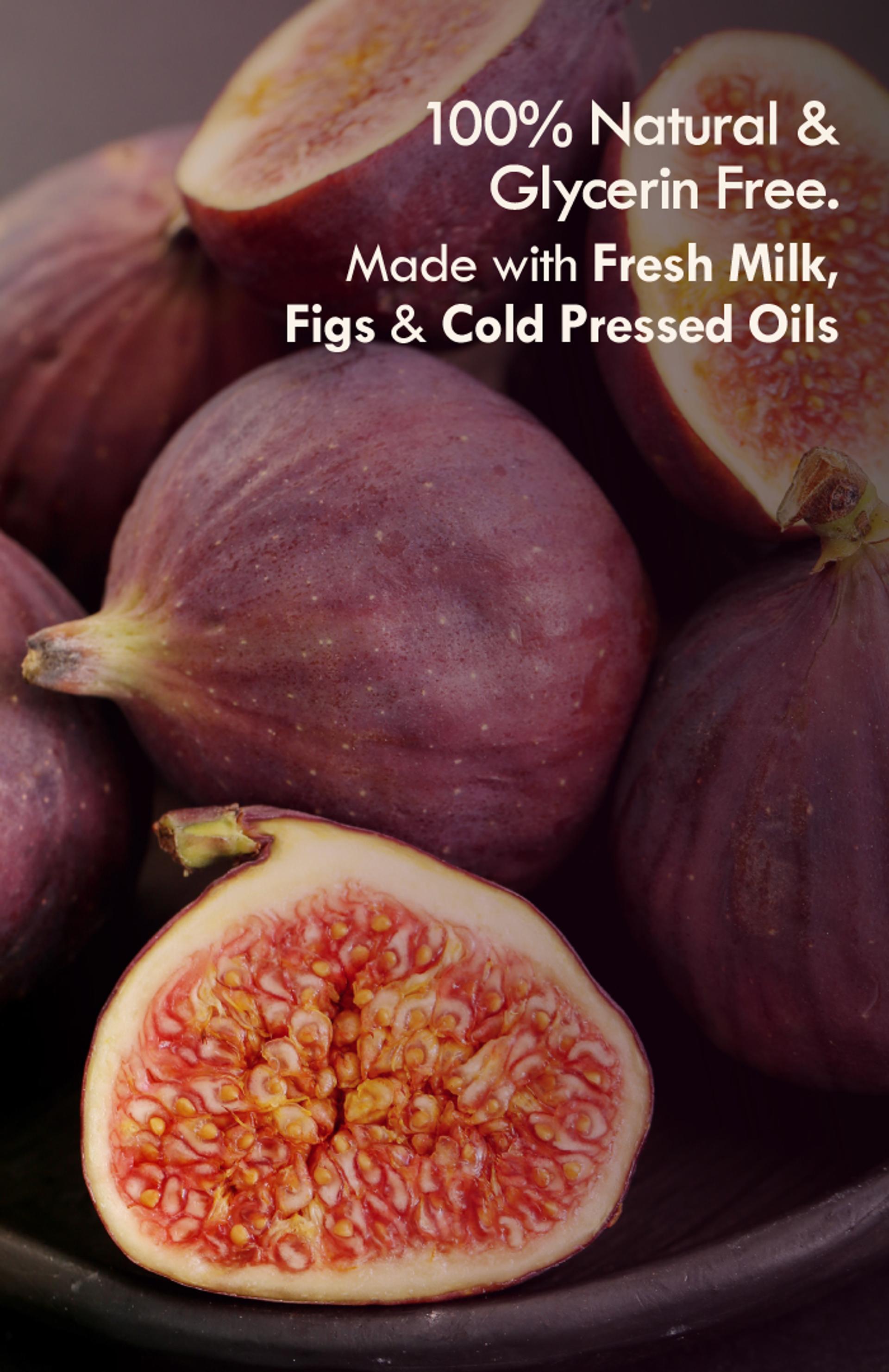Raw milk’s lactic acid gently exfoliates dead skin cells and supports cellular renewal. Fig's bioactive enzymes and antioxidants inhibit melanin overproduction and reduce blemishes. Rose soothes irritated skin, reducing redness and calming acne-prone areas.