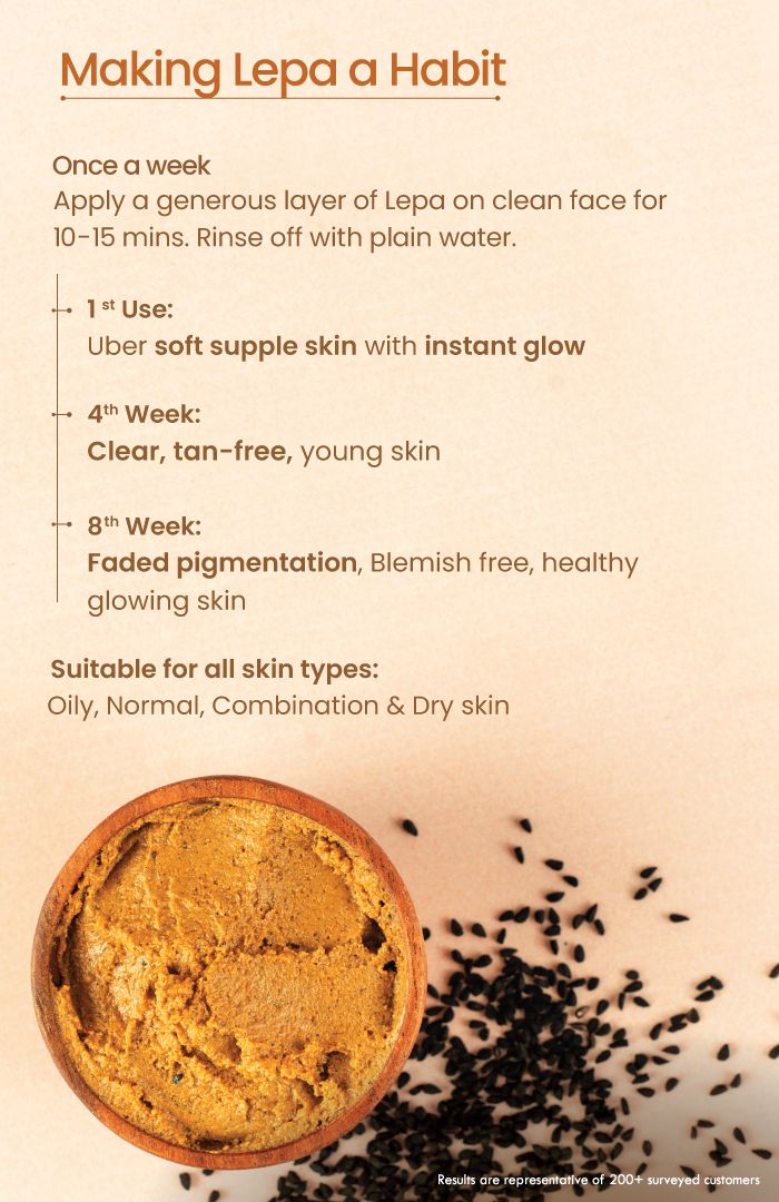 As the lepa sets, it forms a soft barrier that traps warmth and moisture, gently boosting blood flow and lymphatic drainage. This warm, moist micro-climate mimics the skin’s natural healing state, speeding up detox and preparing skin to absorb nutrients better.