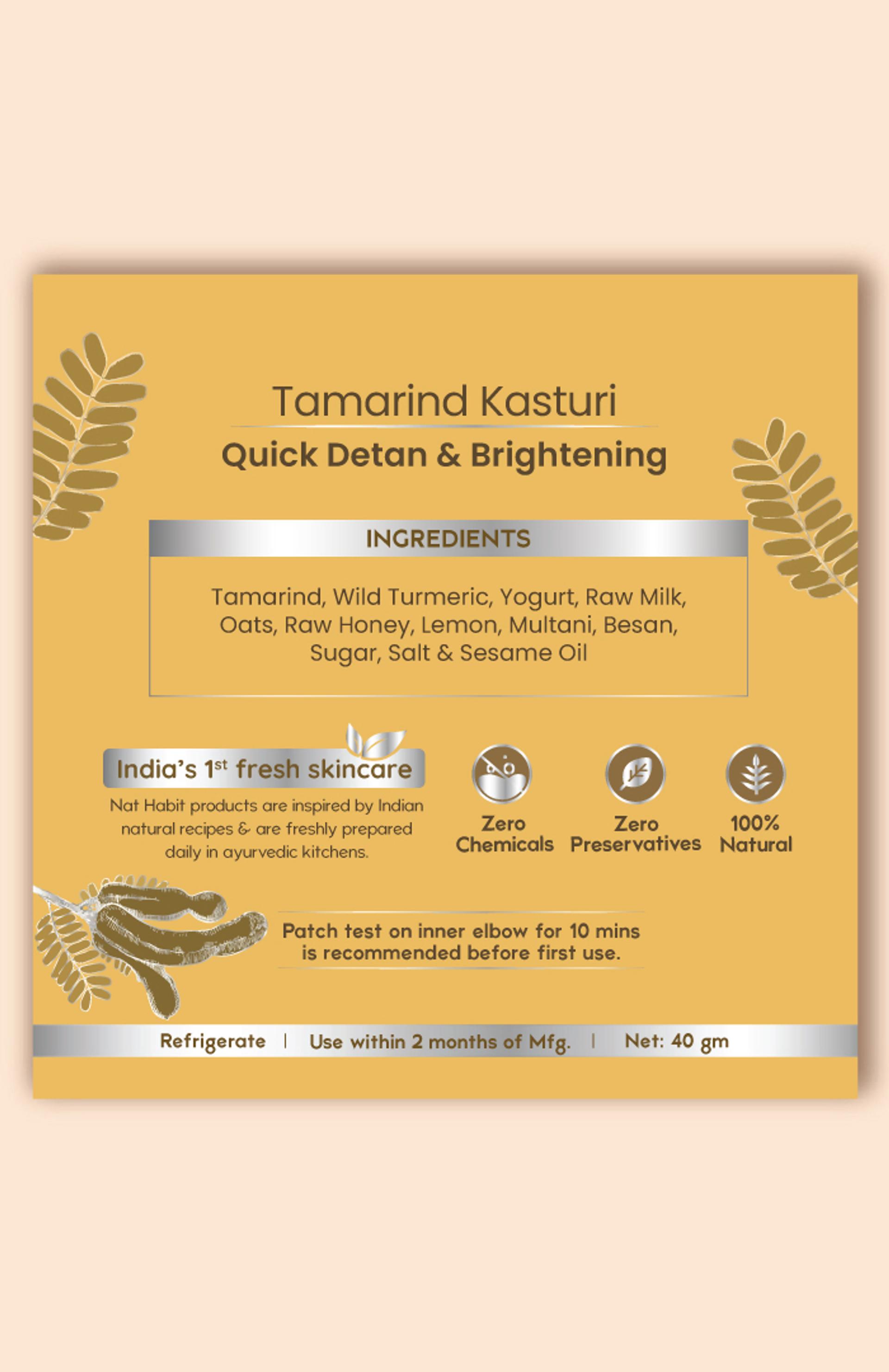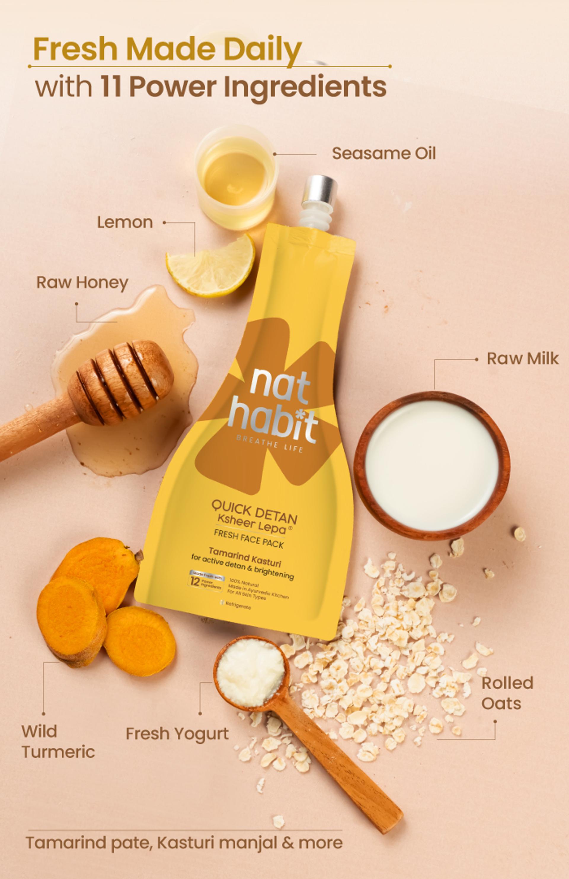 Full Ingredient List: tamarind, wild turmeric, yogurt, raw milk, oats, raw honey, lemon, multani, besan, sugar, salt & sesame oil.