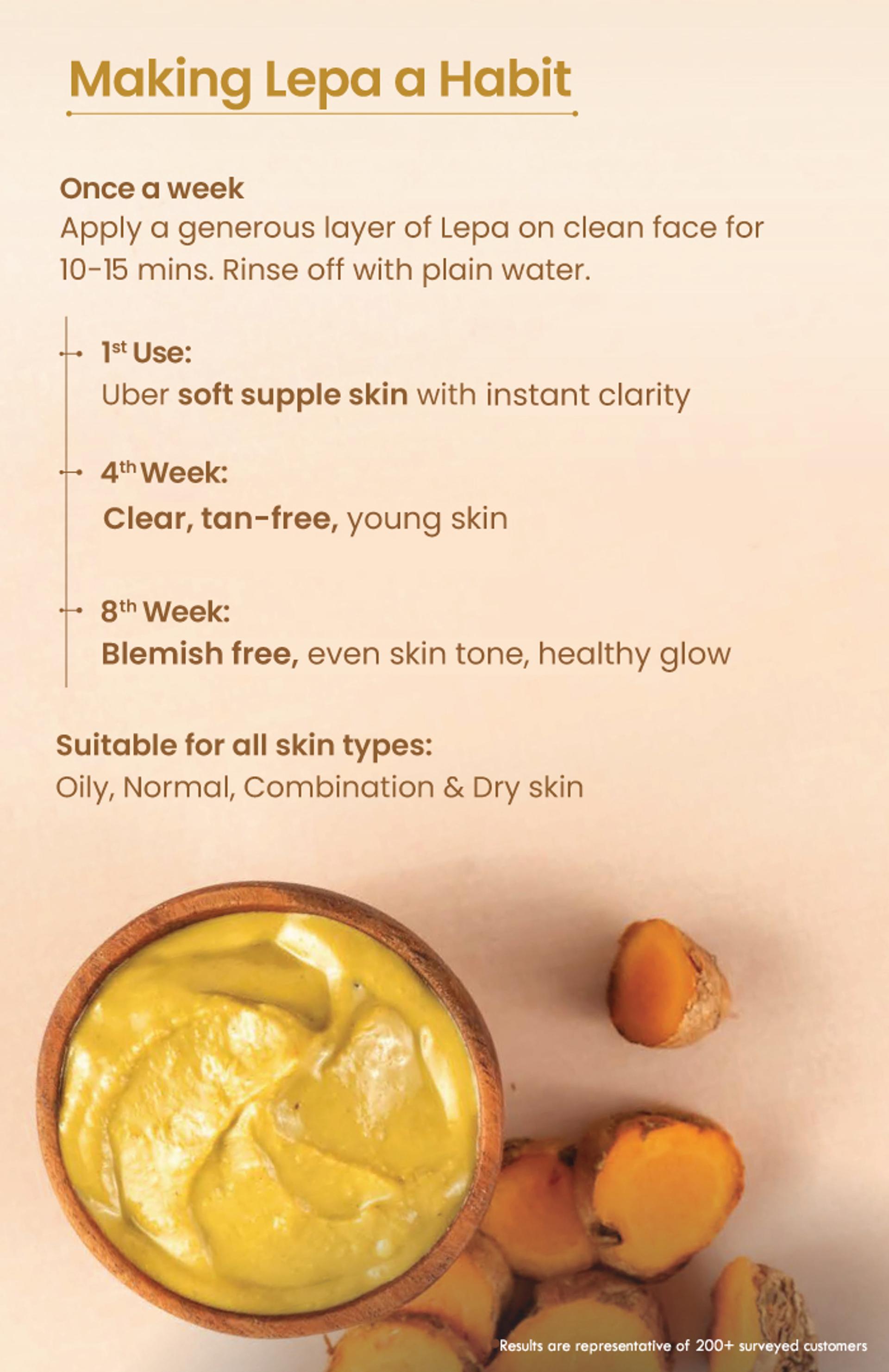As the lepa sets, it forms a soft barrier that traps warmth and moisture, gently boosting blood flow and lymphatic drainage. This warm, moist micro-climate mimics the skin’s natural healing state, speeding up detox and preparing skin to absorb nutrients better.