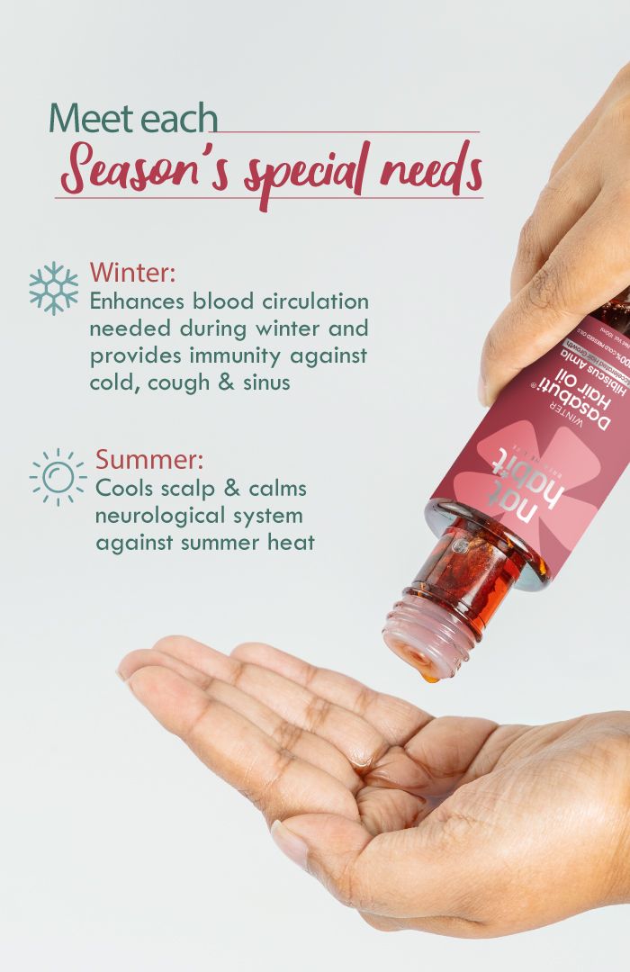 This oil doubles as a warming winter therapy, stimulating blood flow, opening sinuses, and easing scalp pressure. Herbal actives calm winter-induced nervous strain and fatigue, leaving the head clear, warm, and well-rested.