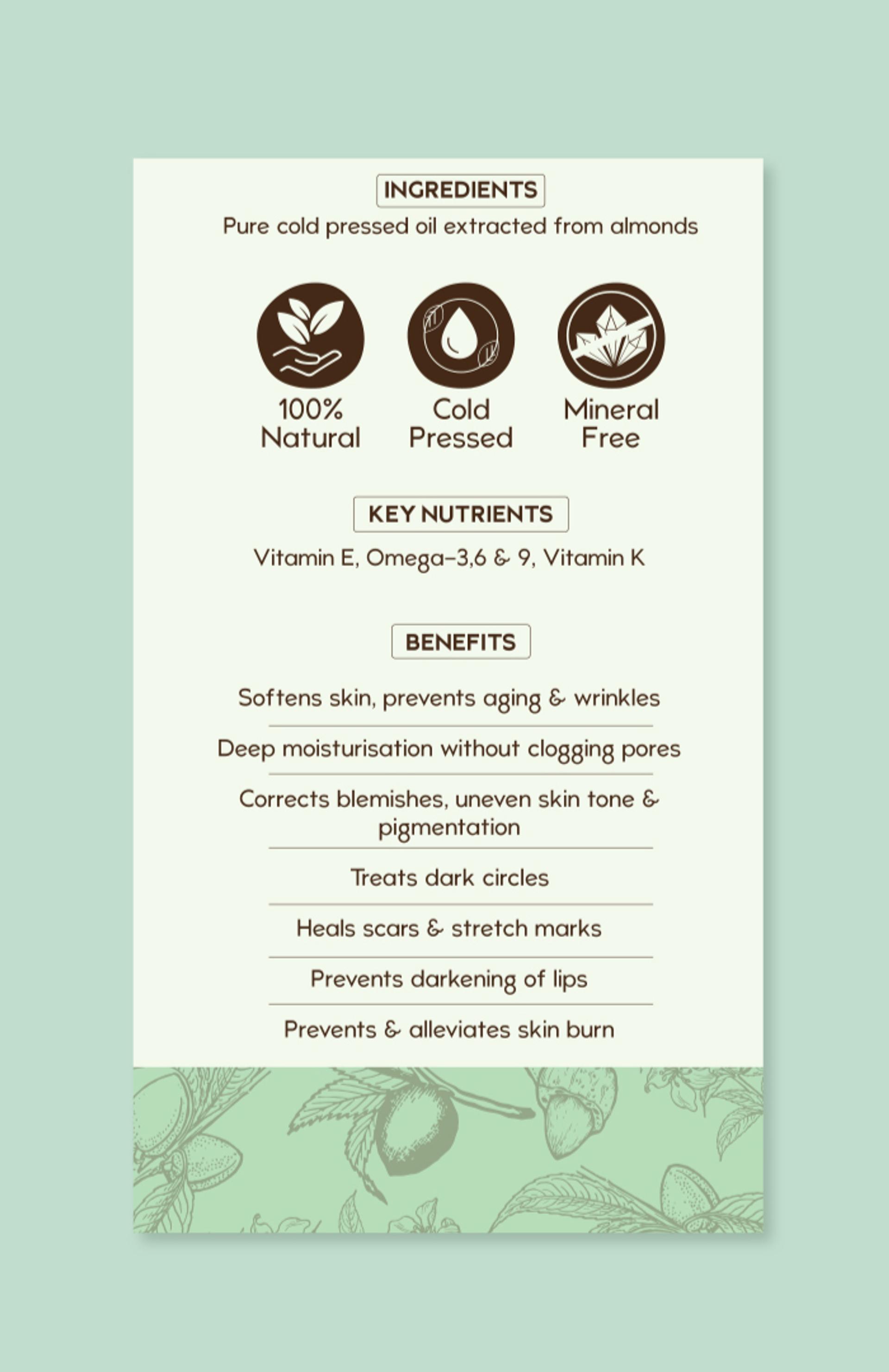 Almond oil is packed with skin-loving nutrients like vitamin E, retinol-like compounds, and essential fatty acids that deeply nourish and protect. It softens dry, flaky skin instantly while working over time to reduce fine lines and delay wrinkle formation, making it a gentle yet effective daily anti-aging companion.