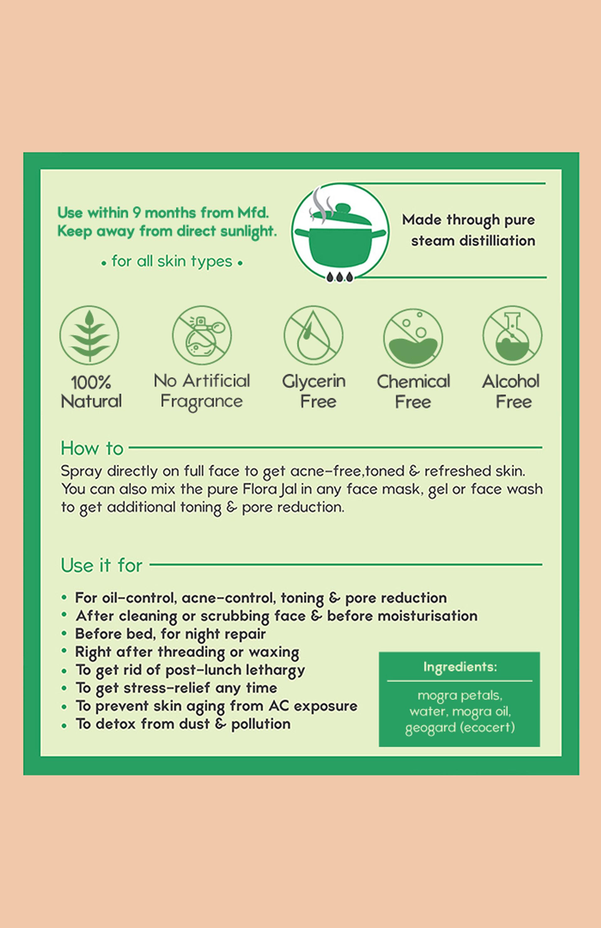Loved this mogra flora jal. Fragrance is awesome. I use it after waking up and when my skin feel dehydrated my skin feel so good after spraying it.