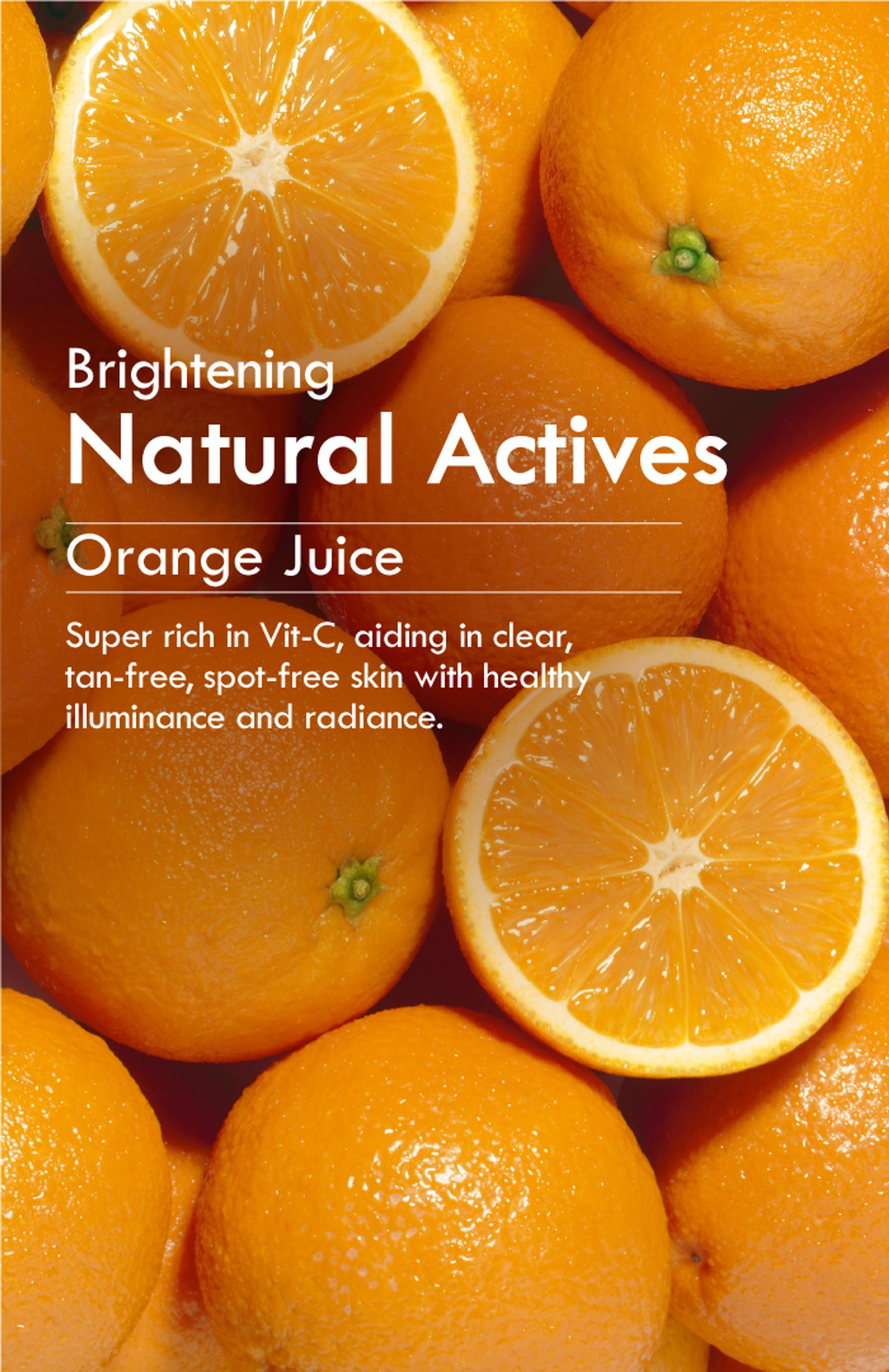 Super rich Vit C blocks melanin triggering enzymes & neutralises oxidative stress.